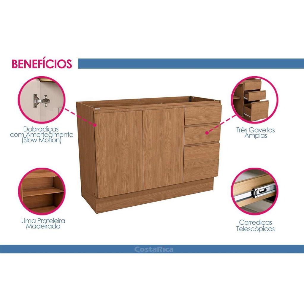 Módulos de Cozinha Kappesberg Ciela Balcão Ciela R626 c/ 2 Portas e 3 Gavetas s/ Tampo 120cm Canela-Kappesberg
