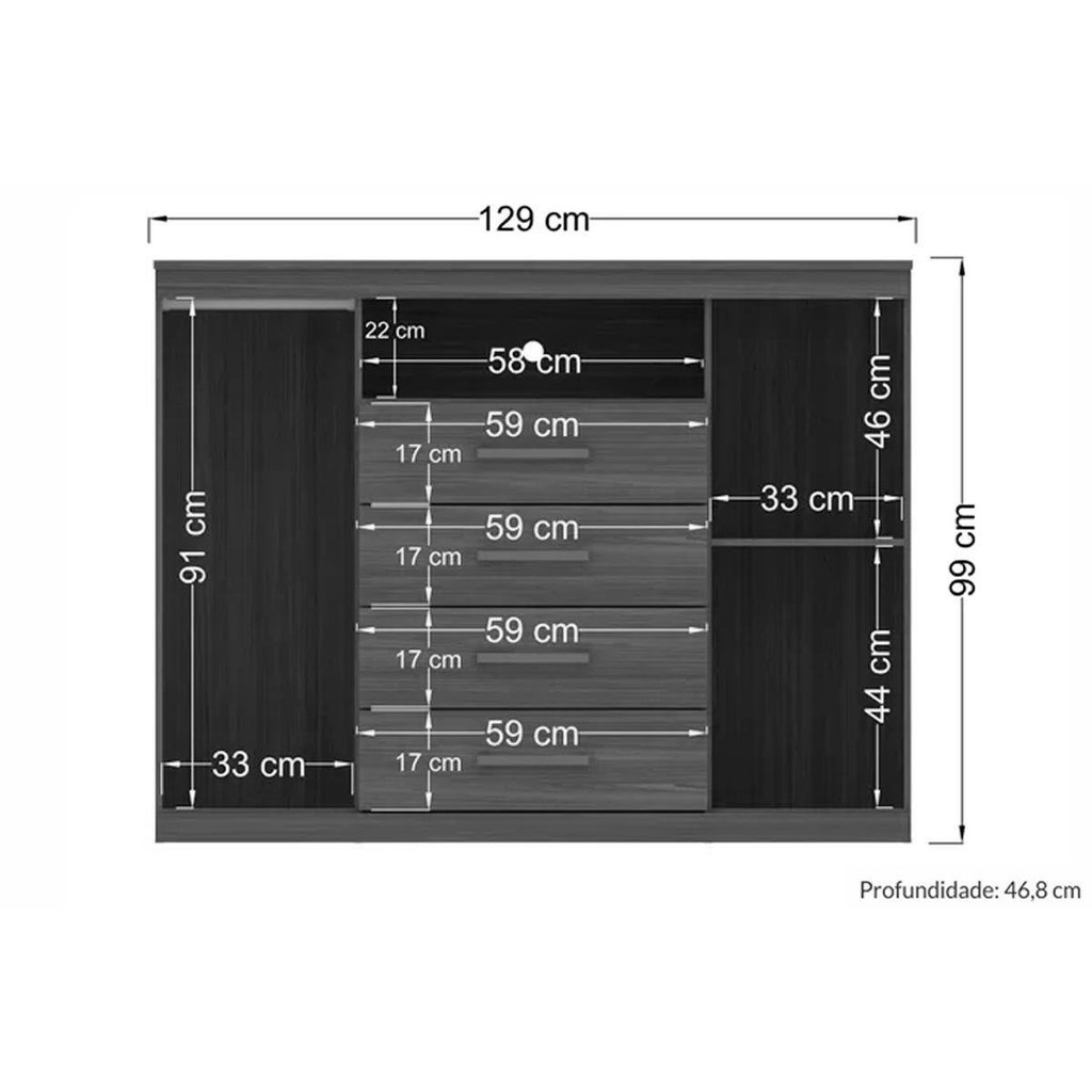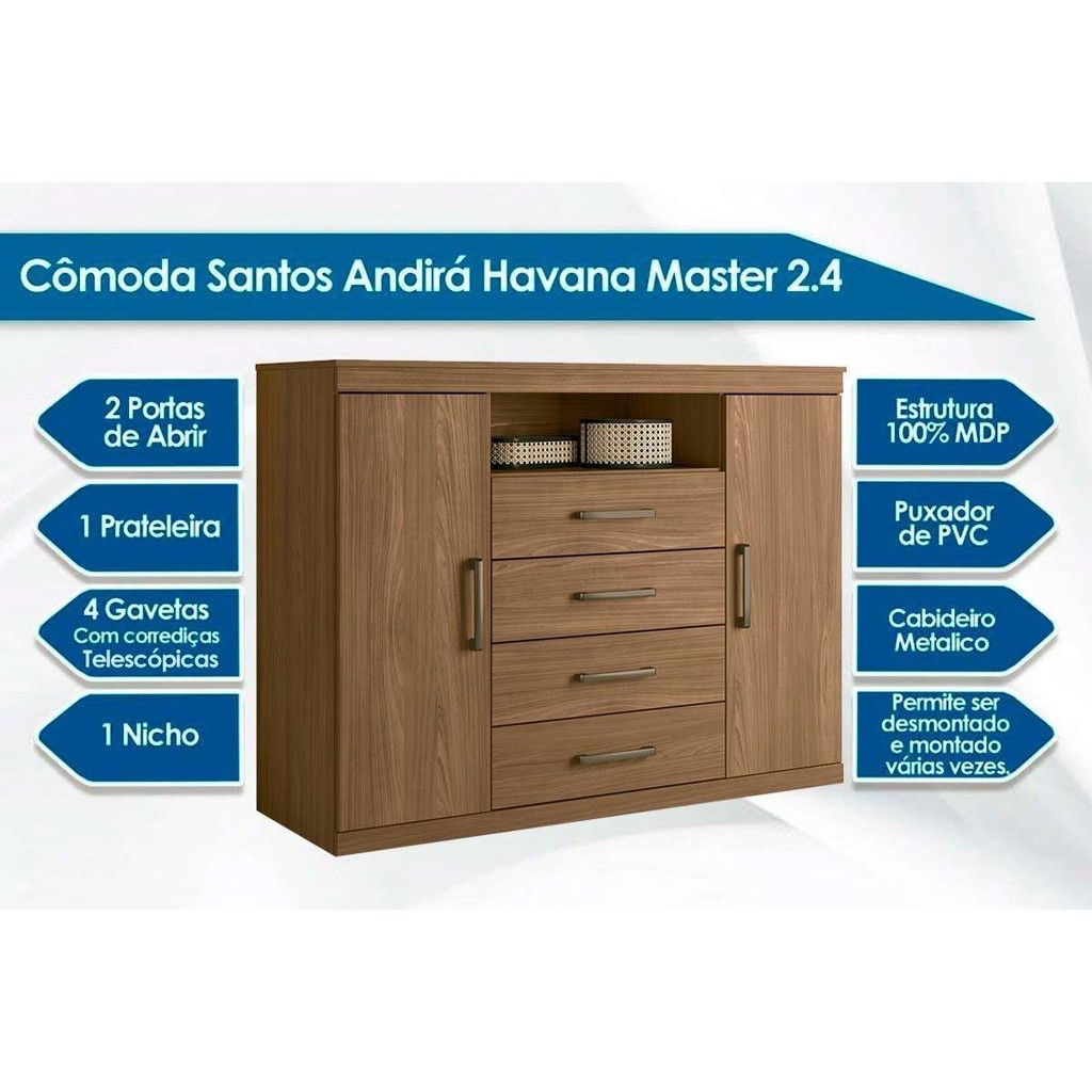 Cômoda de Quarto 2 Portas e 4 Gavetas Master Jatoba - Santos Andirá