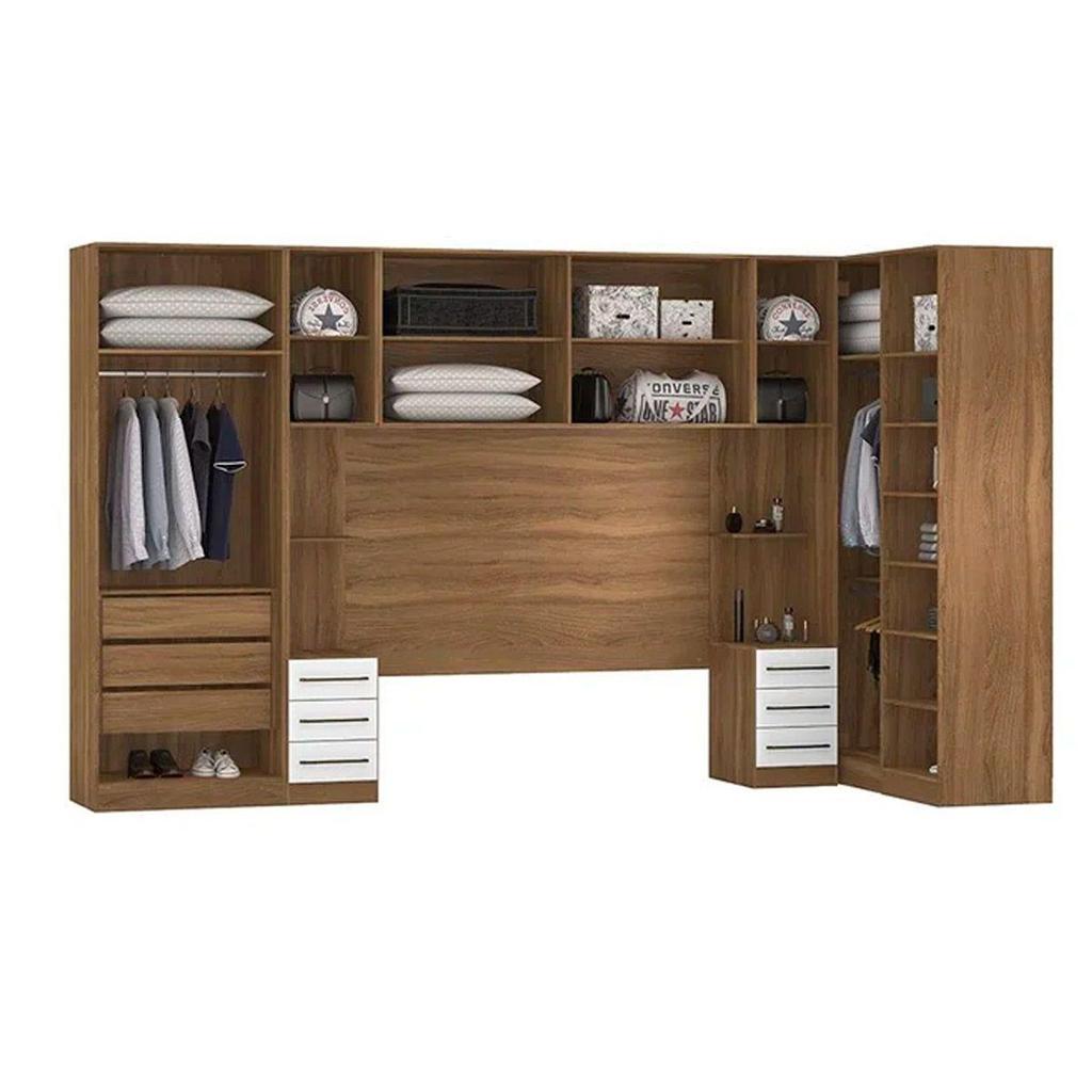 Quarto Casal Modulado Irlanda 7 Peças (3 Armários + 1 Ponte Aérea + 3 Complementos) QCM158 Amendola/Branco - Demóbile