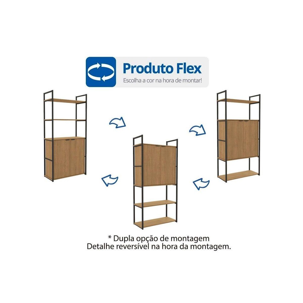 Estante Livreiro de Escritório Industrial Alta LI041 c/ 2 Portas 72x151cm Freijo/Preto - Kappesberg