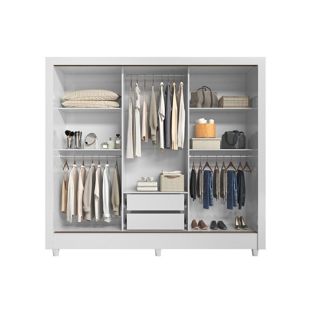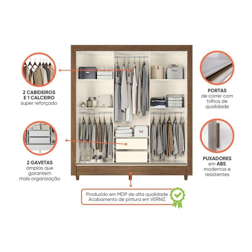 Guarda Roupa Casal Itália 3 Portas de Correr Jequitiba/Off White Santos Andirá