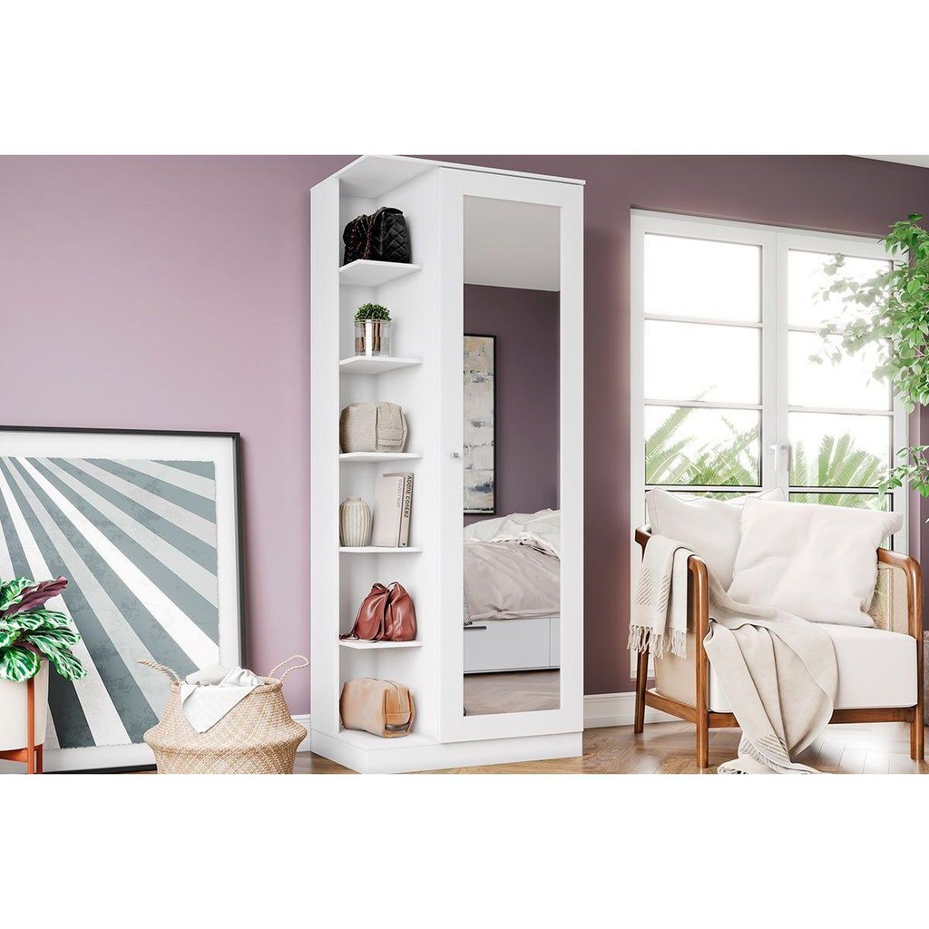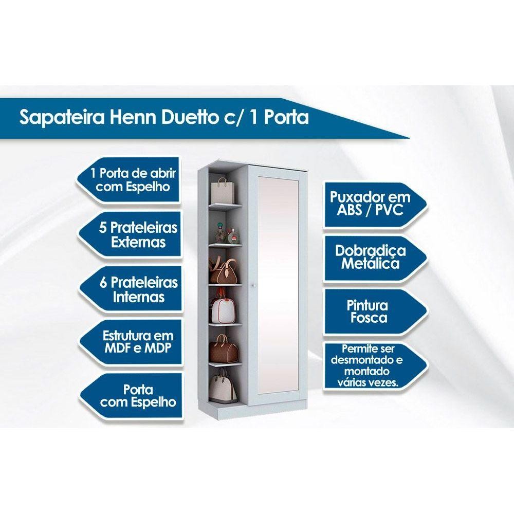 Armário Sapateira Quarto Duetto c/ 1 Porta c/ Espelho Branco - Henn