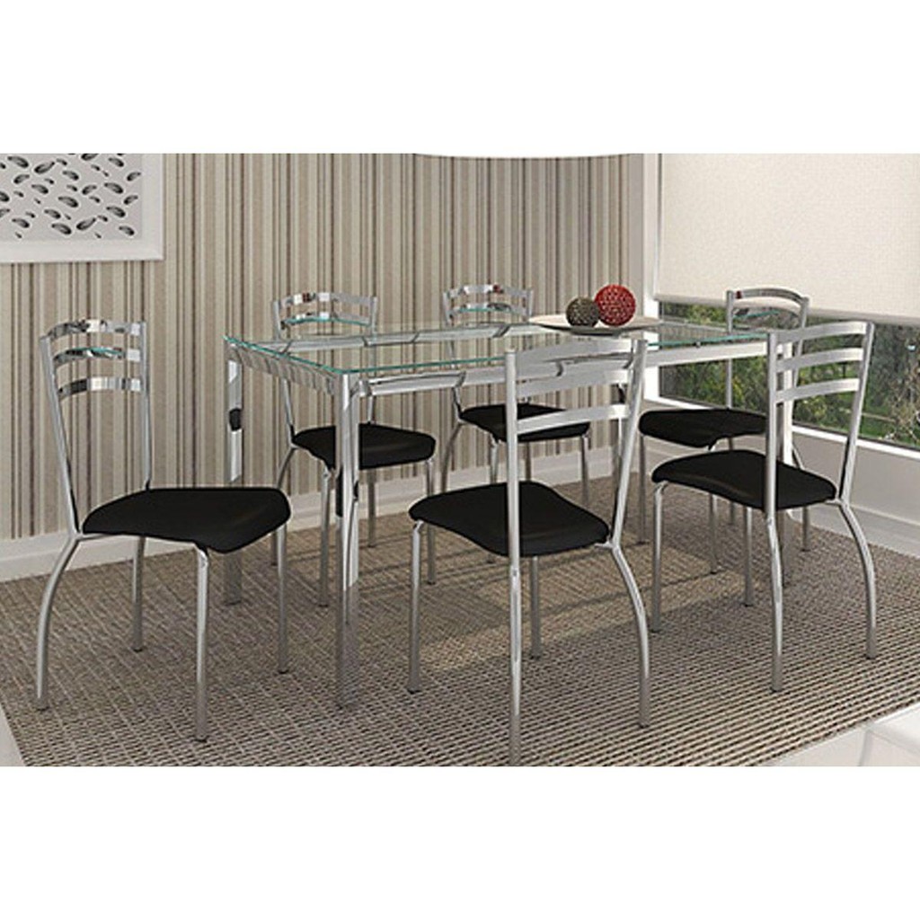 Cadeira Sala de Jantar Portugal C007 Kit 6 Un Cromada/Preto 110 - Kappesberg