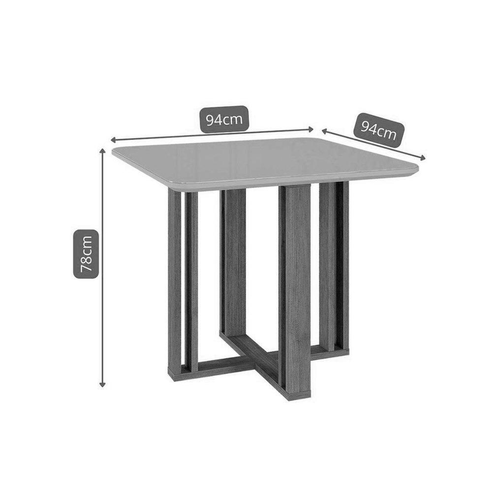 Mesa de Sala Jantar Flora c/Tampo Madeirado Vidro 95x95cm Nature/Off White - Cimol