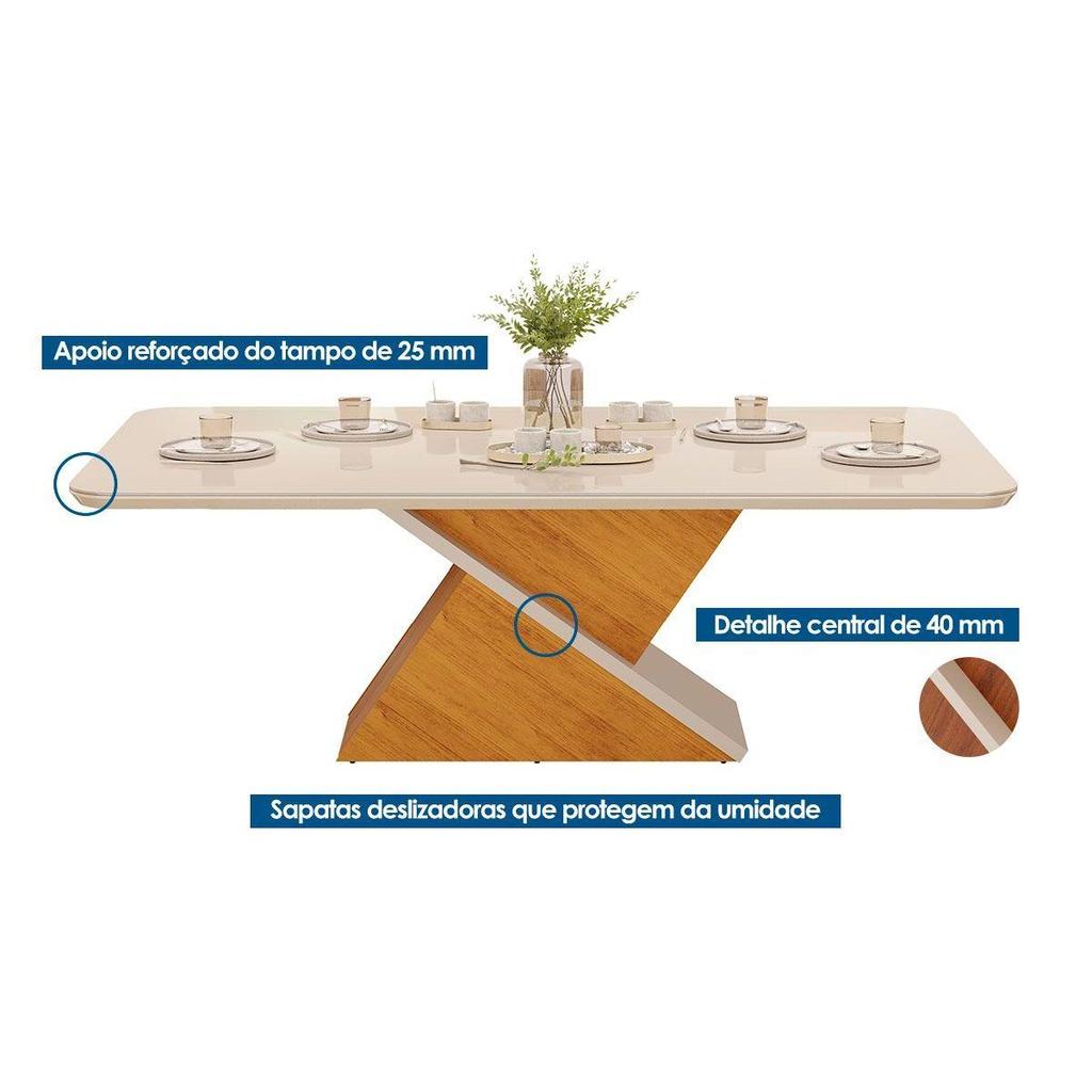 Mesa de Sala Jantar Zafira c/Tampo Madeirado Vidro Curvo 200x100cm Freijó/Off White - DJ Móveis