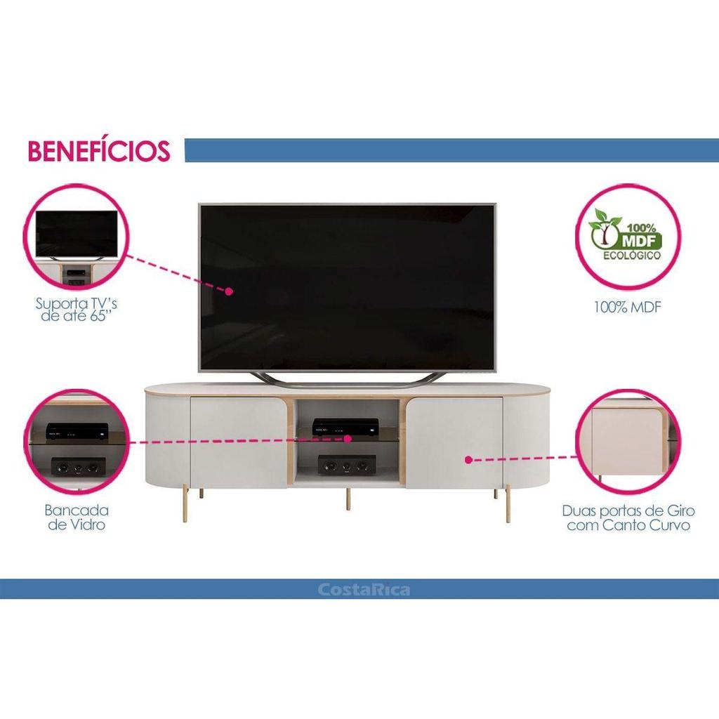 Rack Bancada p/ TV até 65 Pol Adele c/ 2 Portas 180x57cm Off White/Off White - DJ Móveis