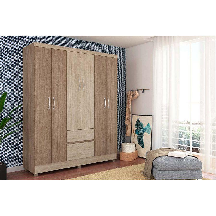 Guarda Roupa Solteiro 6 Portas e 2 Gavetas Flash II Amêndola Touch - Demóbile