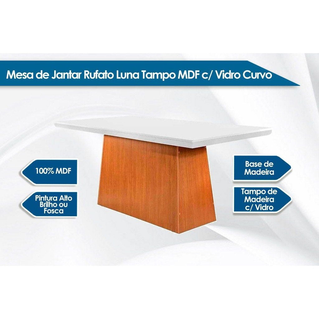 Mesa de Sala Jantar Luna + Tampo Madeirado Vidro Curvo 180x90cm Grafite/Imbuia Ripado 3D - Vidro Grafite - Rufato