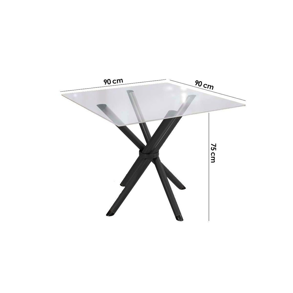 Sala de Jantar Completa Volga c/ Tampo de Vidro 90cm e 4 Cadeiras Zaria Preto - Suede Cinza - Kappesberg