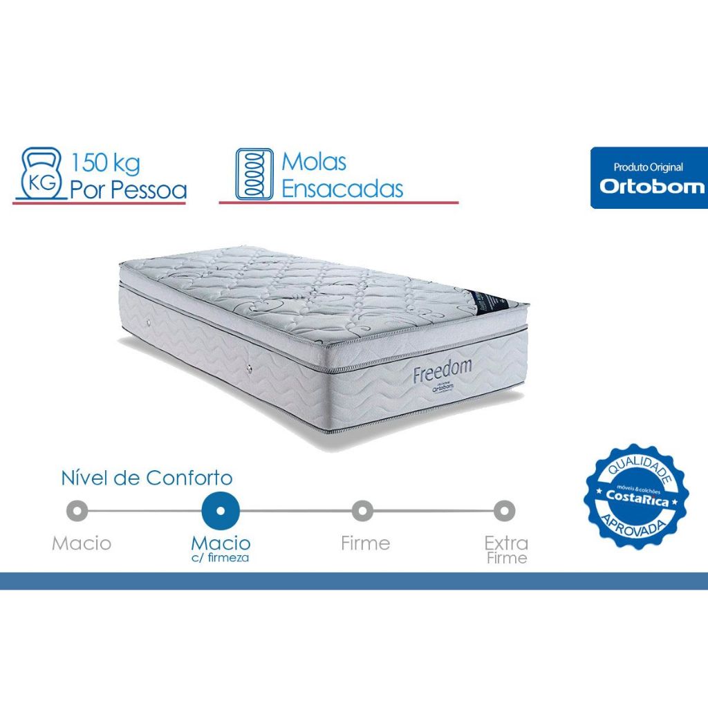 Colchão Queen Molas Ensacadas Visco Super Pocket Freedom OrtoPillow (158x198x32) - Ortobom