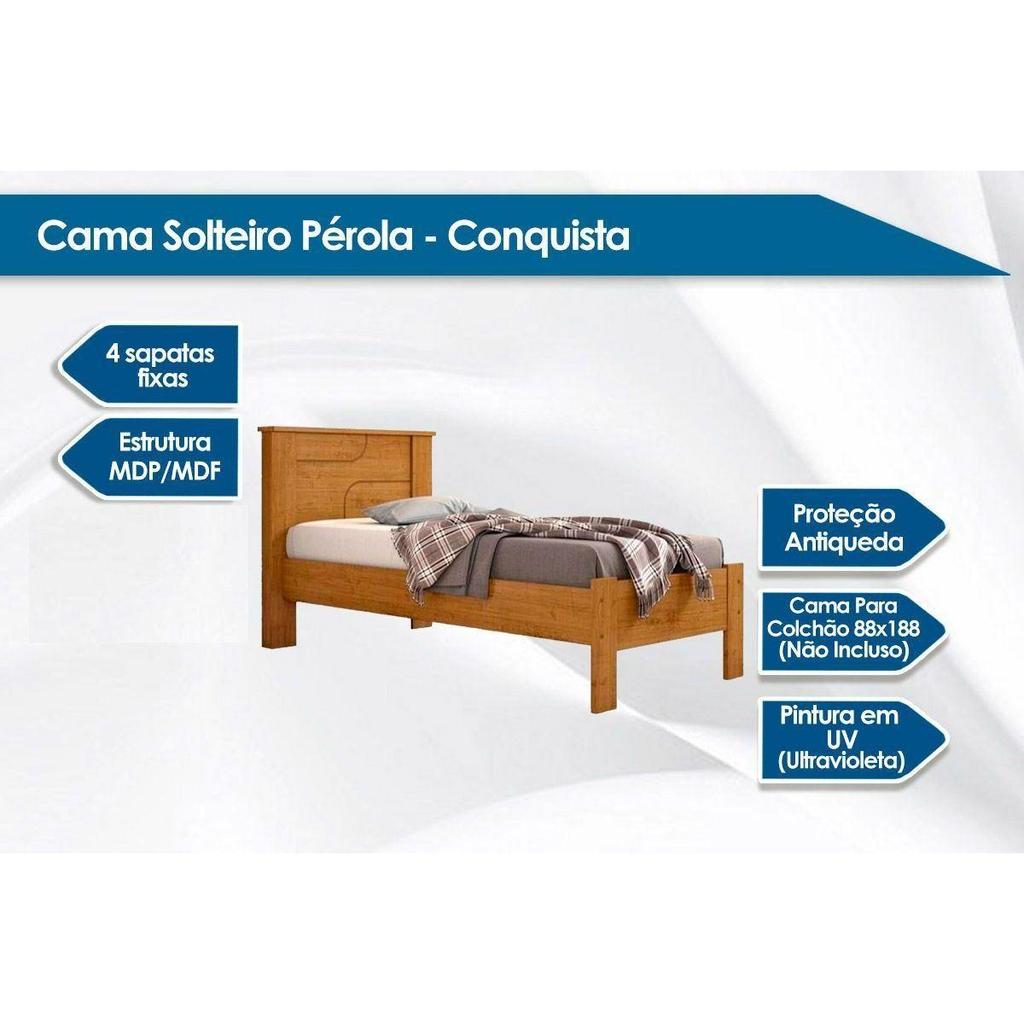 Cama Solteiro Pérola c/ Auxiliar Cinamomo/Off White - Conquista