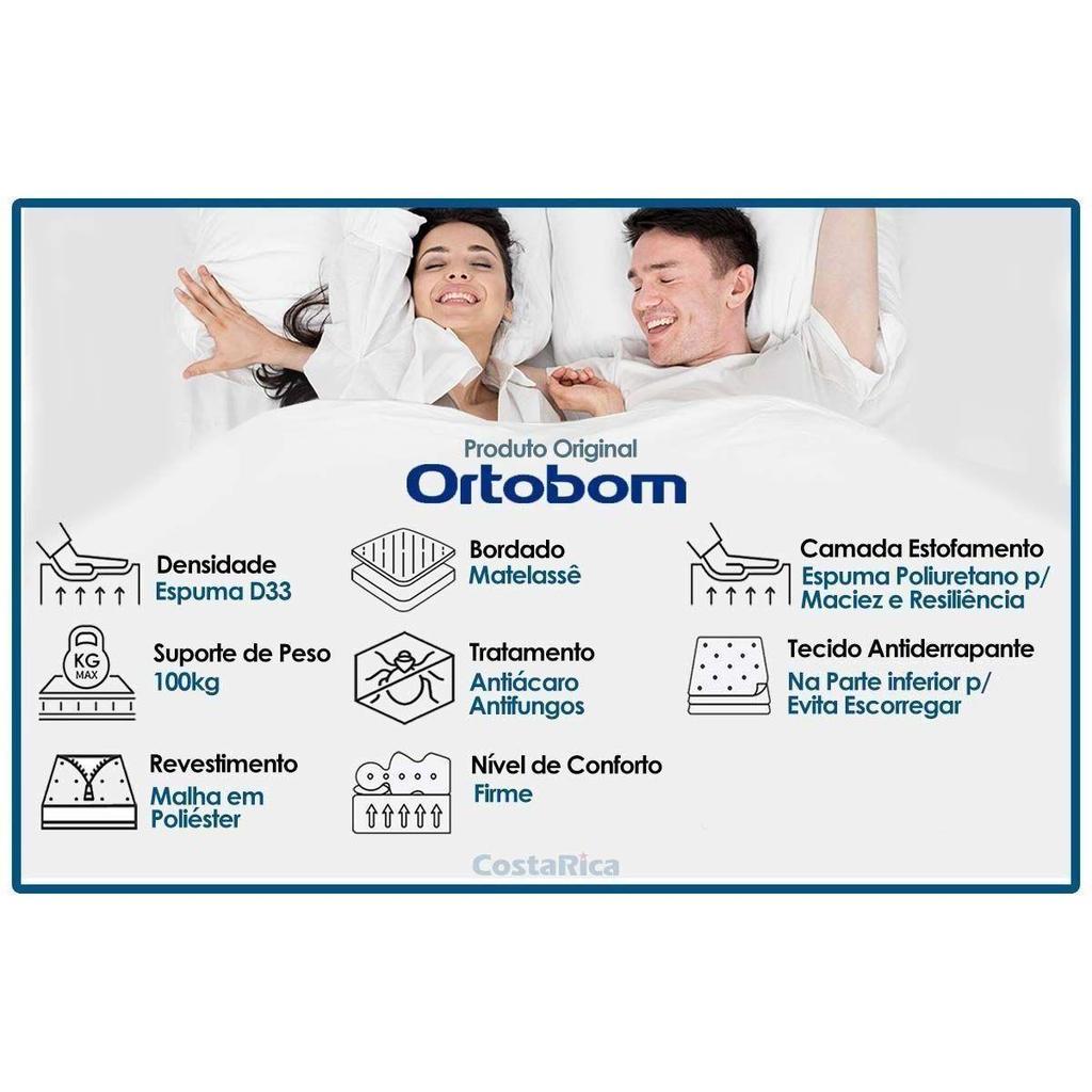 Conjunto Box Solteiro: Colchão Anatômico Ortobom D33 ISO 100 Ultra Firme + Base CRC Suede Black (88x188)