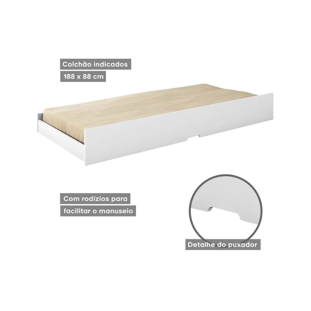 Cama Auxiliar Solteiro Premium II Branco - Conquista