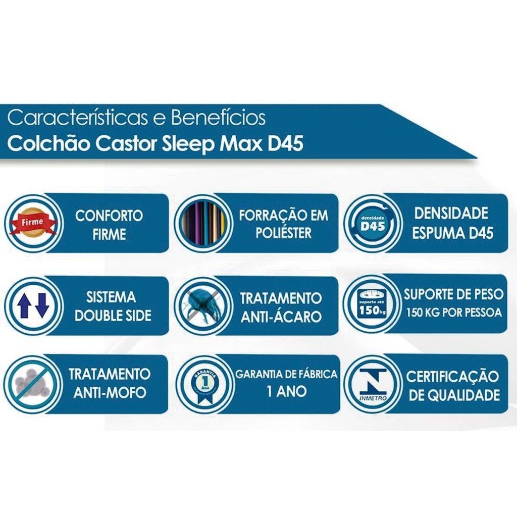 Conjunto Box Casal: Colchão Espuma Castor D45 Sleep Max + Base CRC Courano White(138x188)