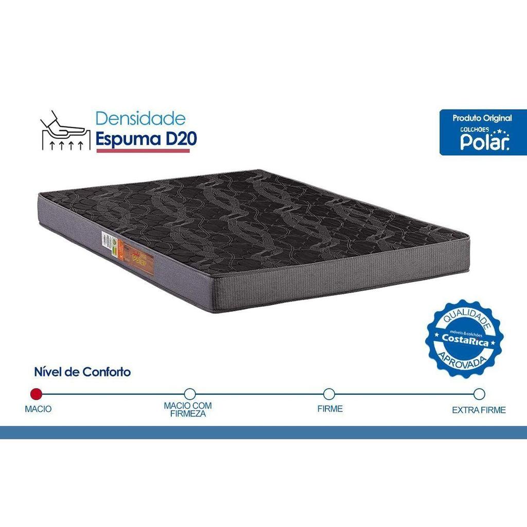 Conjunto Box Baú Solteiro: Colchão Espuma Polar D20 Pérola + Base CRC Suede Black(88x188)