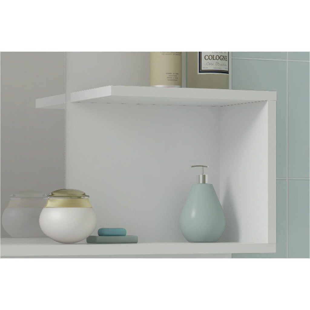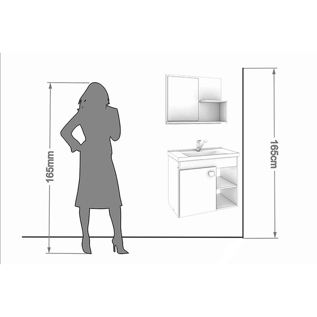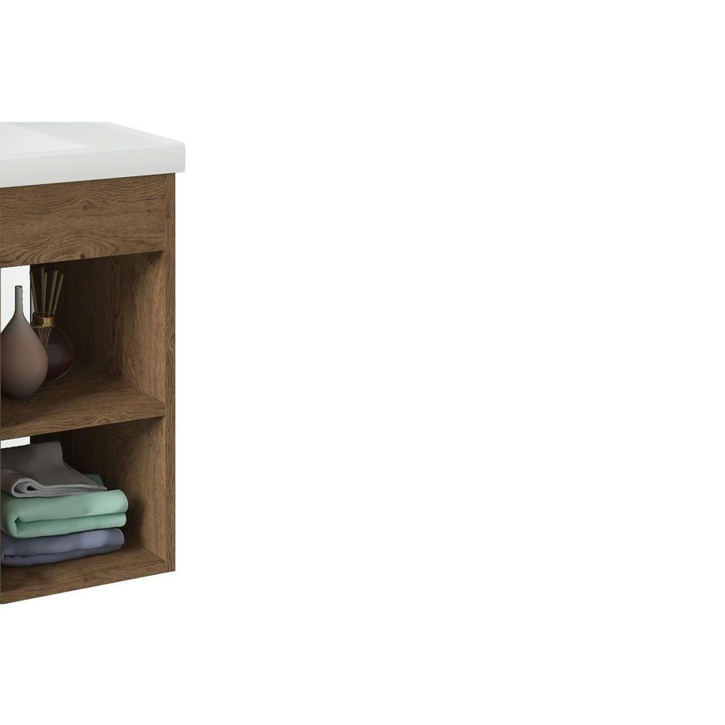 Balcão p/ Banheiro Suspenso Lótus/Bia c/ Cuba 55cm e Armário c/ Espelho Amendoa/Off White - MGM