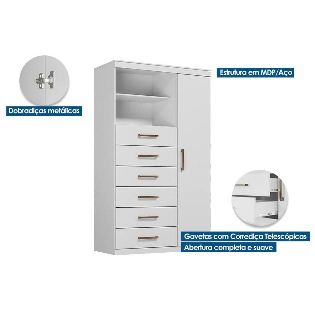 Cômoda de Quarto Marabá 1.6 c/ 1 Porta 2 Nichos e 6 Gavetas c/ Espelho Jatoba/Grafitte - Santos Andirá