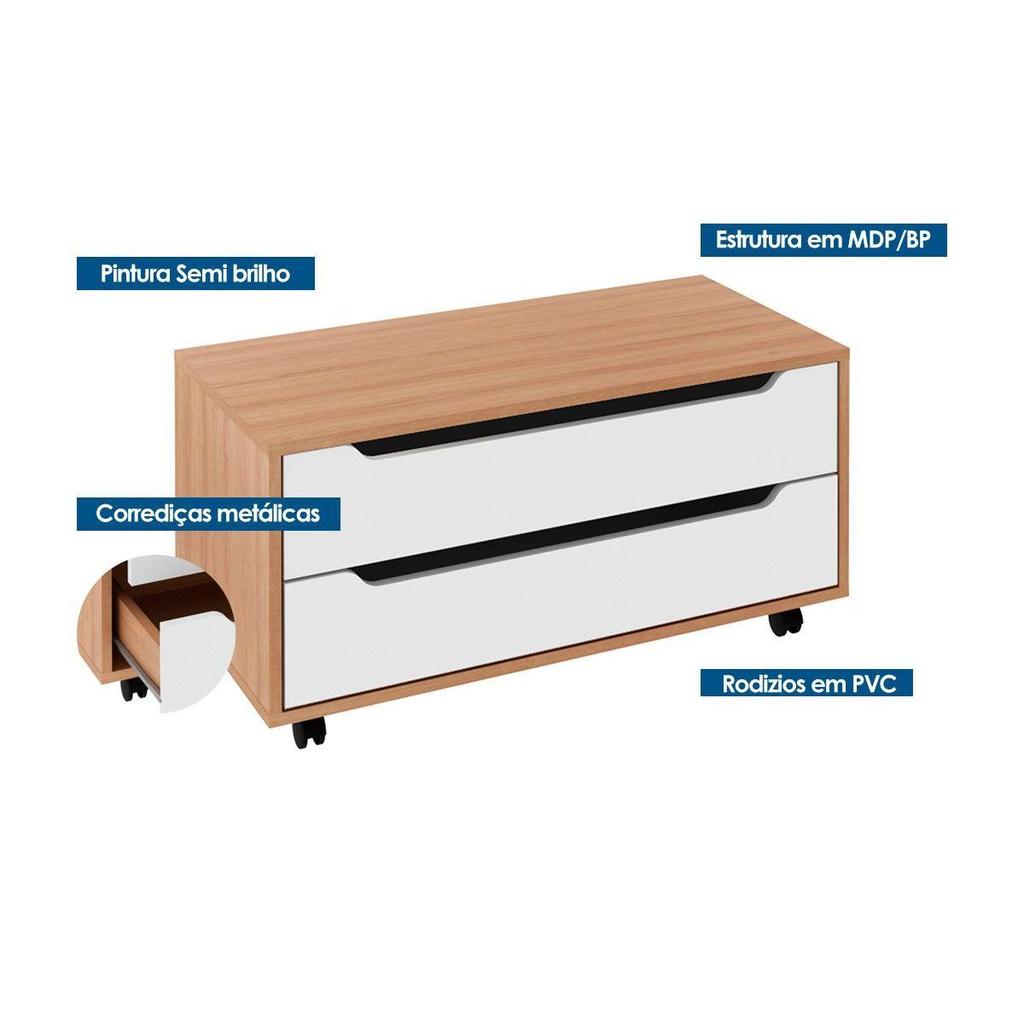 Gabinete de Banheiro c/ Rodizio BN3643 s/ Cuba 2 Gavetas 80cm cor Amêndoa/Branco - Tecno Mobili