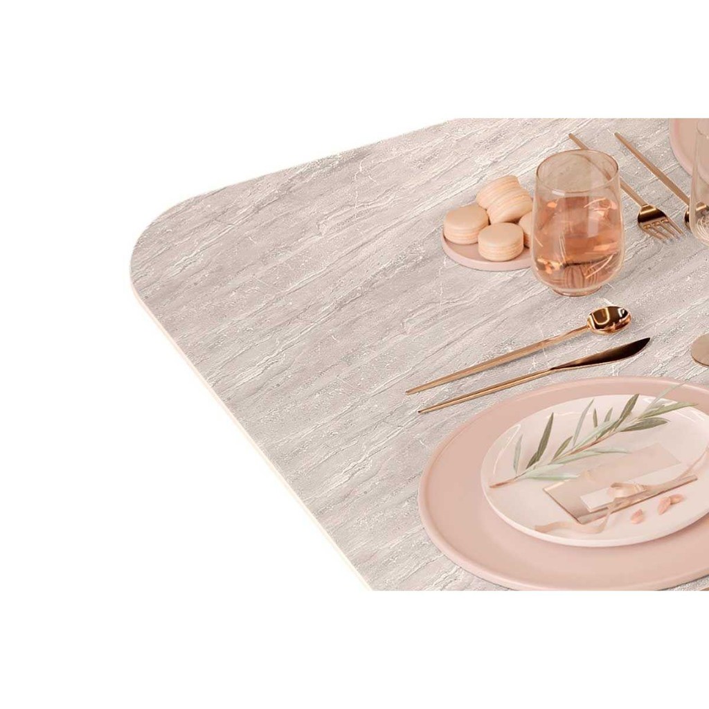 Mesa de Sala Jantar Celeste c/ Tampo Madeirado Curvo 170x90cm Freijo/Quartzo - DJ Móveis