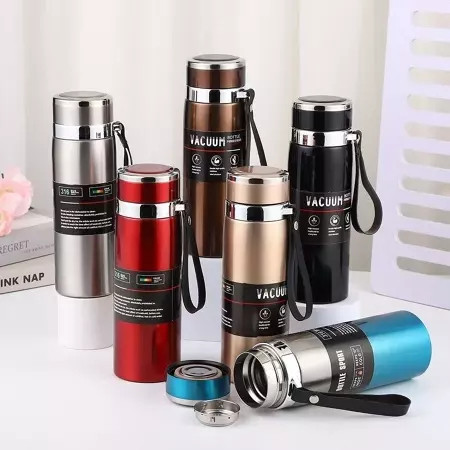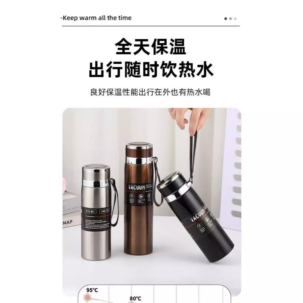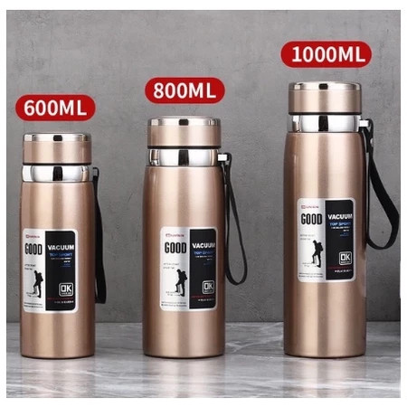 Garrafa 800ml/1000ml Inox Térmica Com Infusor Prata Dourada Marron Água Café Parede Dupla Com Alça