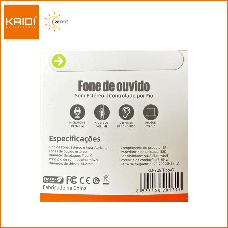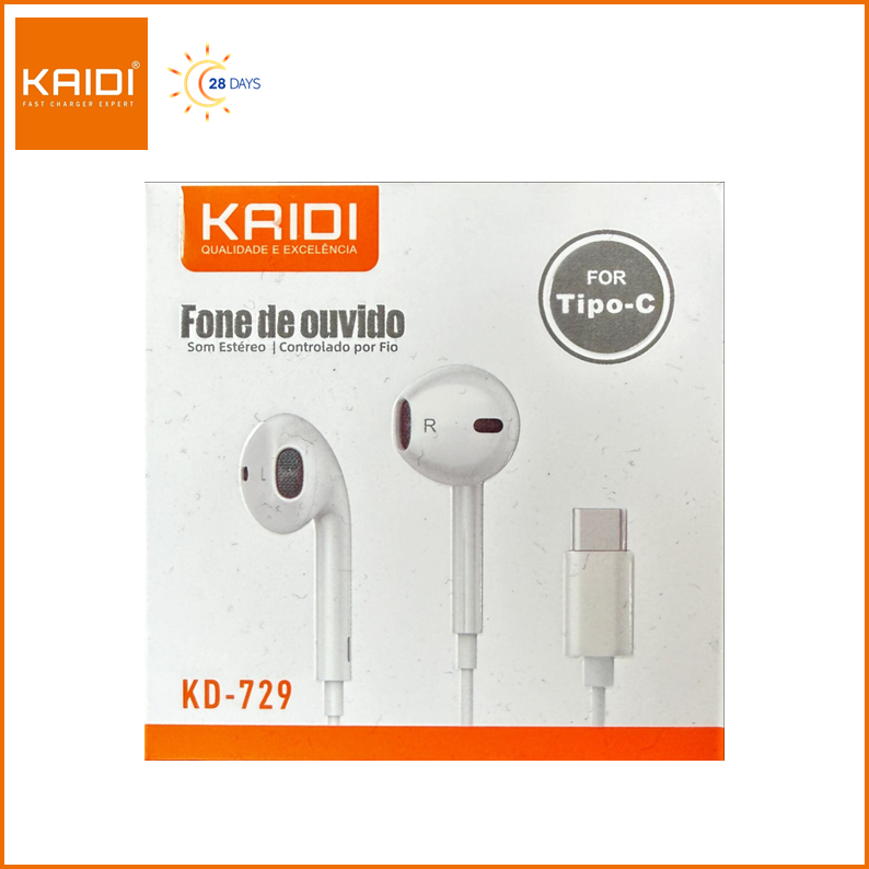 Fone de ouvido com fio auriculares paara Tipo C Microfone e Ajuste de volume KAIDI KD-729