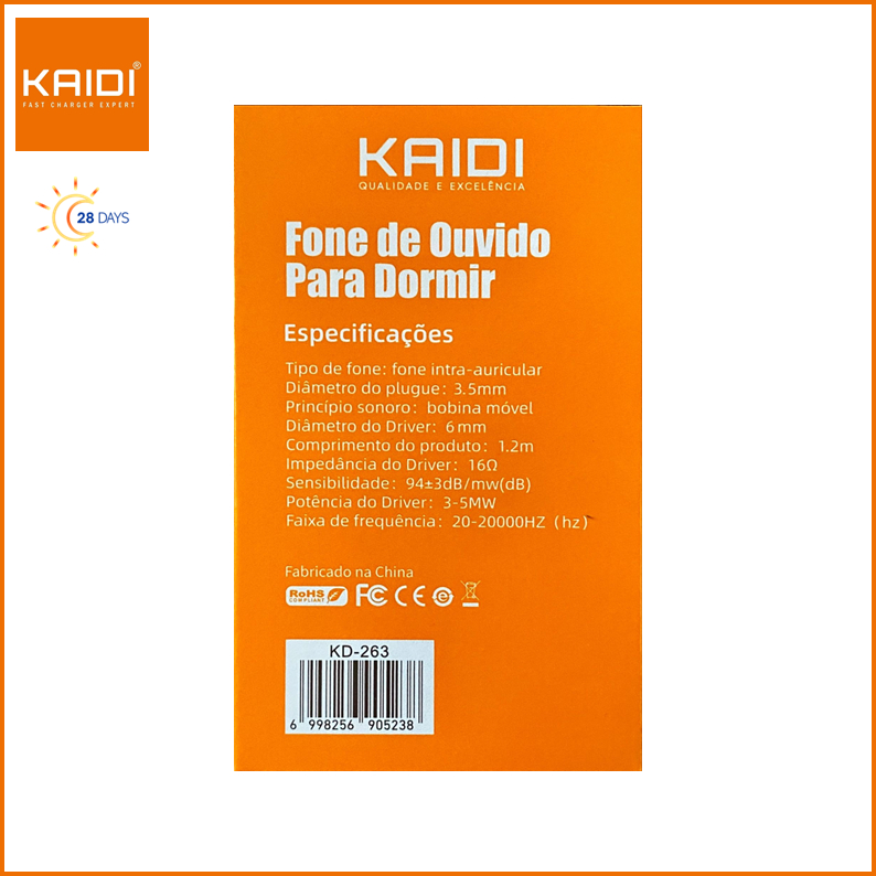 Fone de ouvido com fio intra auricular para P2 Microfone e Ajuste de volume KAIDI KD-263