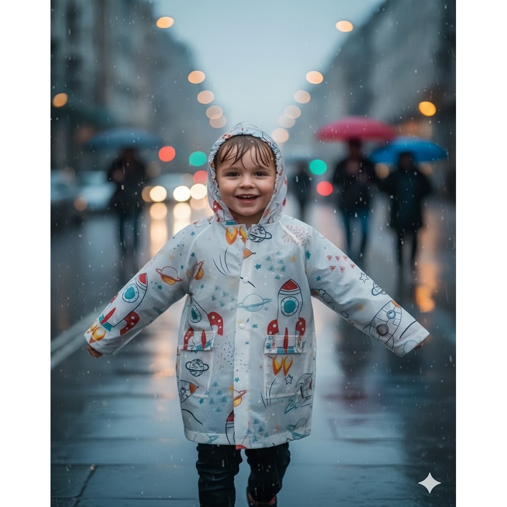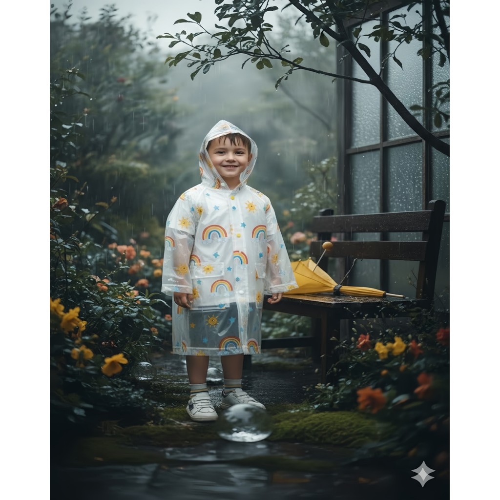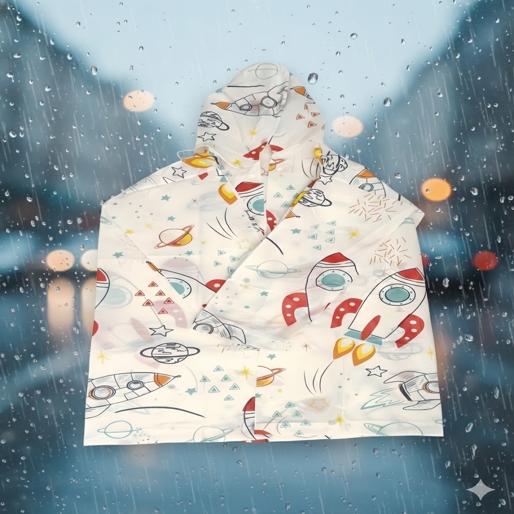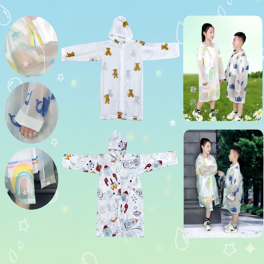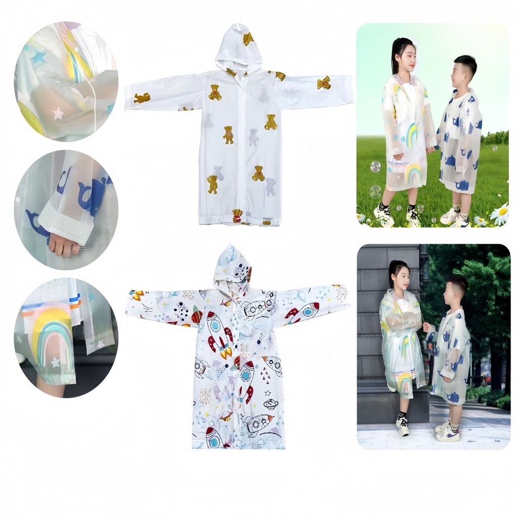 Capa de Chuva Infantil EVA Impermeável Com Capuz e Manga Cumprida 84x54cm Unissex - Bingo