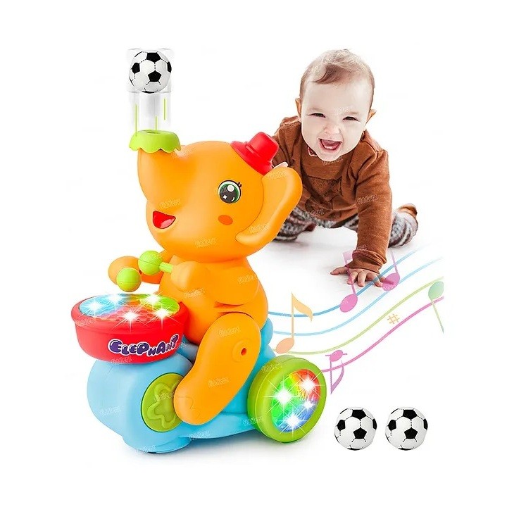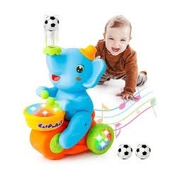 Elefante Musical Equilibrista Assopra Bola Bate e Volta Com Luzes e Sons Cor Aleatória