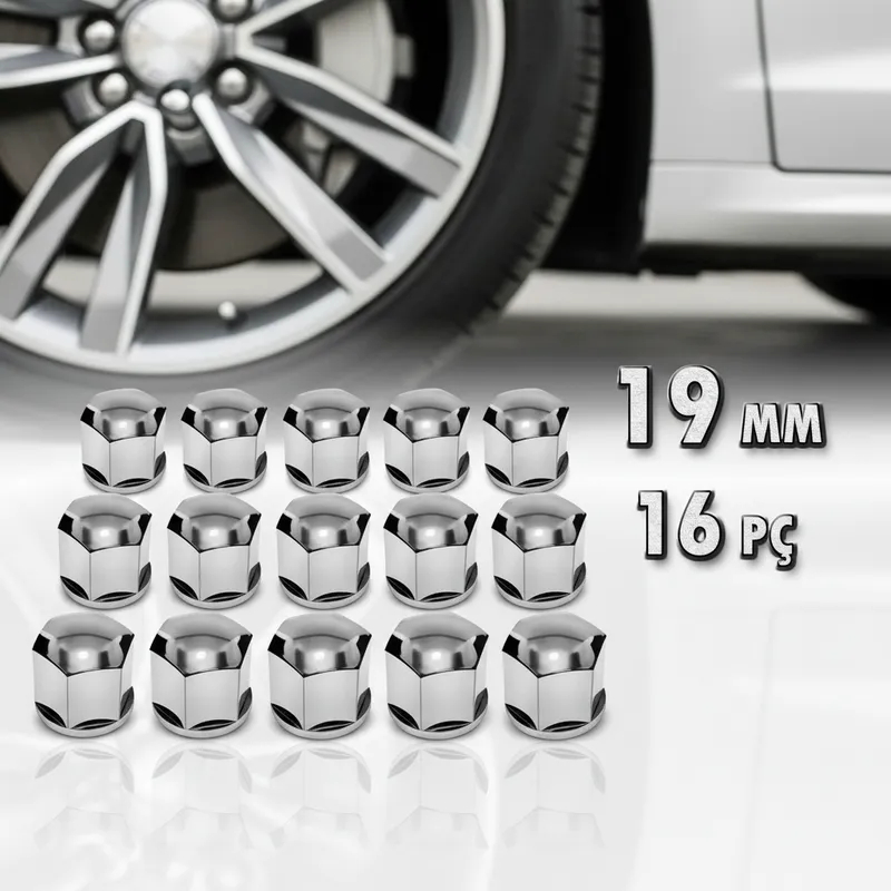 Kit 16 Capas de Parafuso Cromadas 17mm/19mm – Proteção e Estilo!