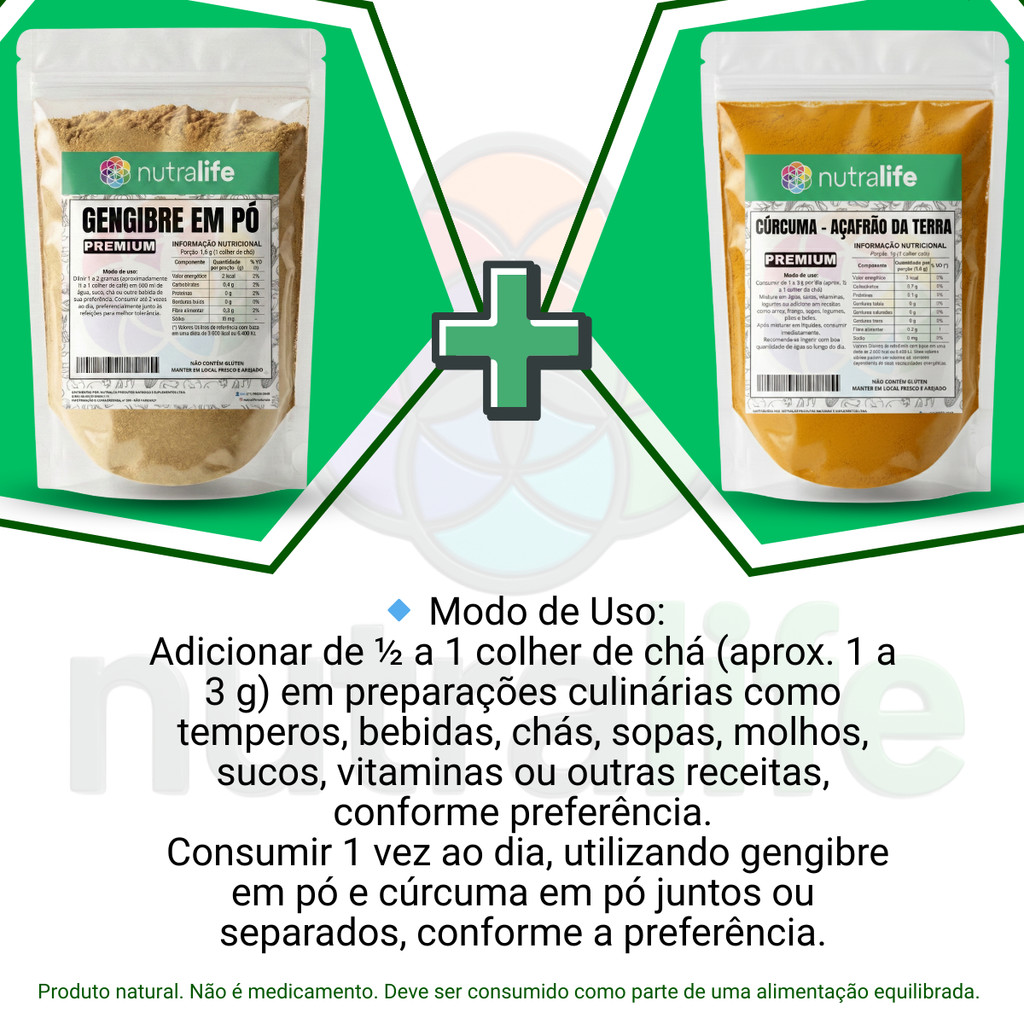Gengibre + Cúrcuma em Pó | Bebida matinal | Qualidade Premium | 100% Puro