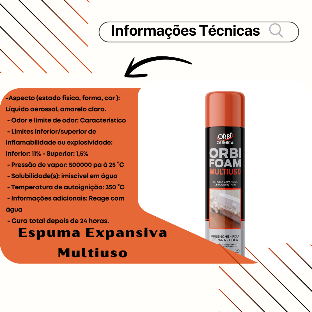 Espuma Expansiva Orbi Foam 500ml 320g Multiuso Orbifoam