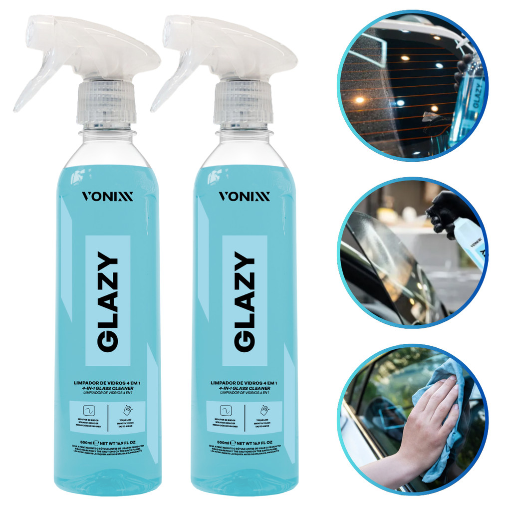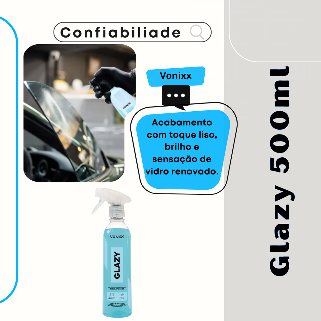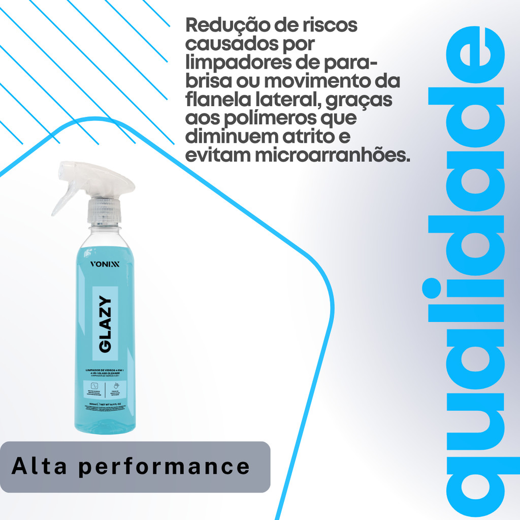 GLAZY 500ML LIMPA VIDROS AUTOMOTIVO VONIXX 4 EM 1 COM REDUTOR DE ATRITO E RISCOS
