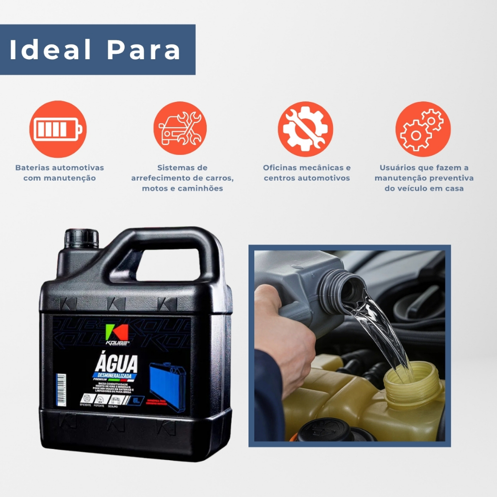 Água Desmineralizada Koube 5 L Radiador Bateria Automotiva