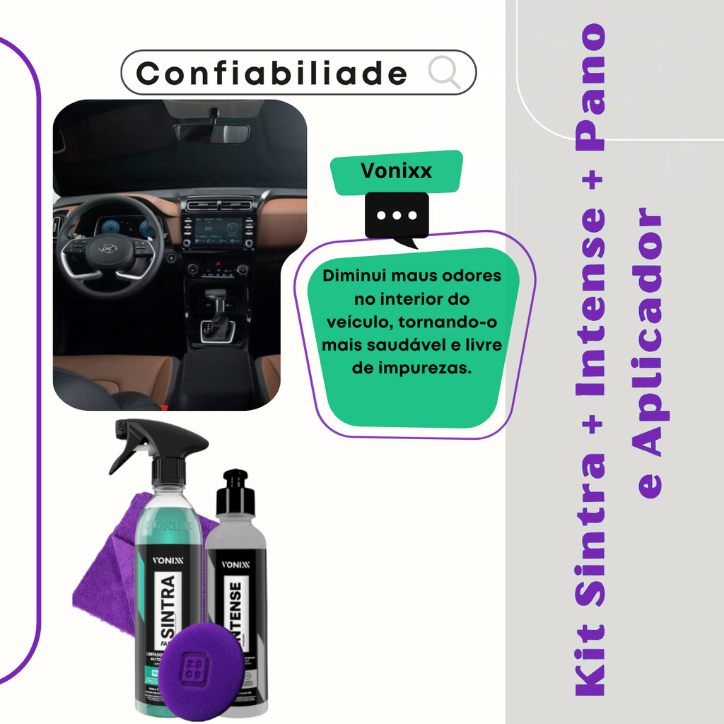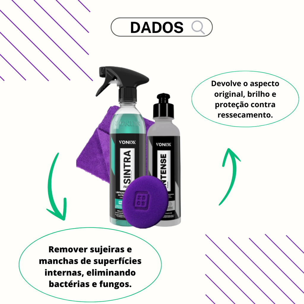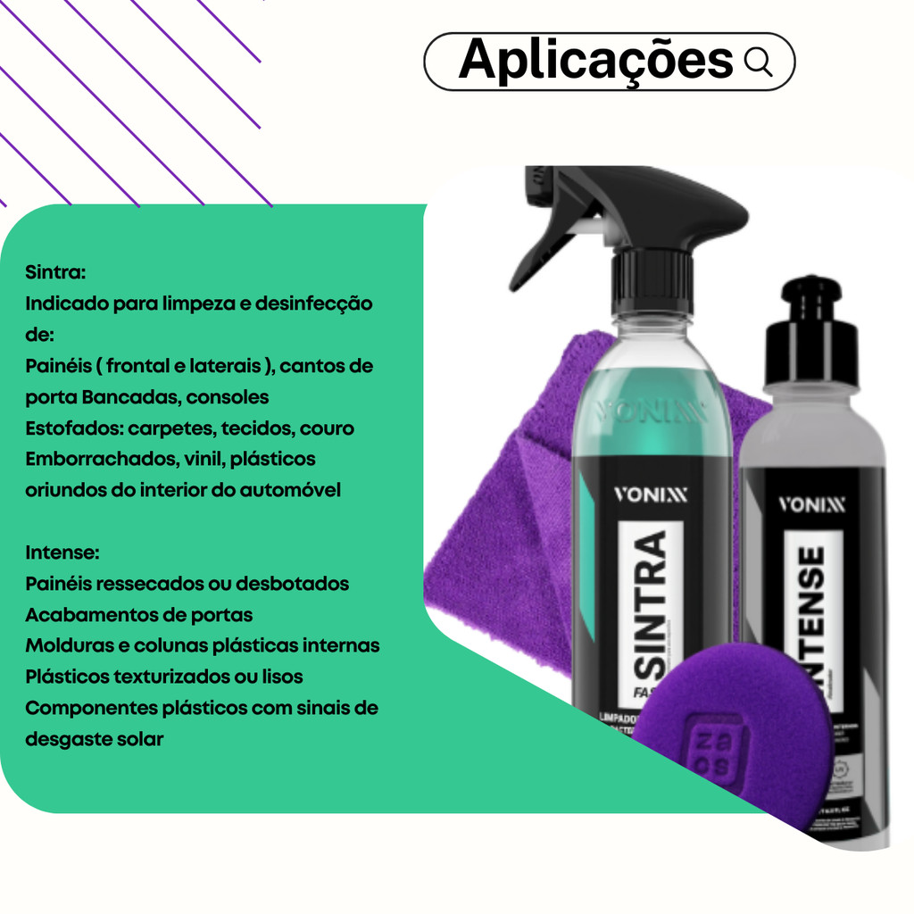 Kit Sintra Fast Limpador + Intense Renovador De Plásticos Vonixx Com Pano e Aplicador