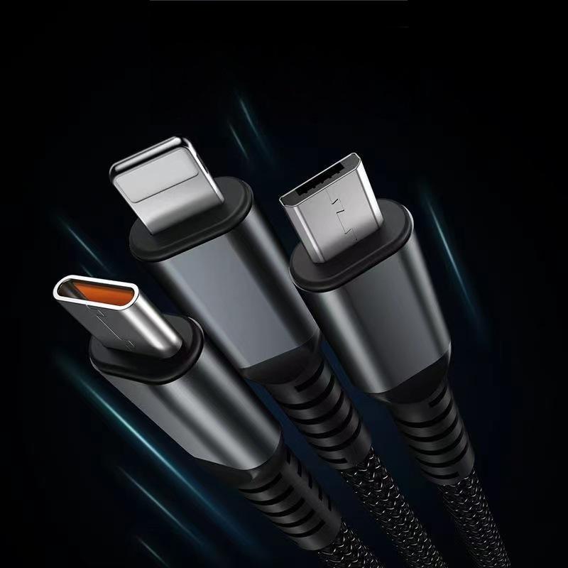 O cabo de carregamento multifuncional está disponível com cabos de dados 3 em 1 Apple e Android