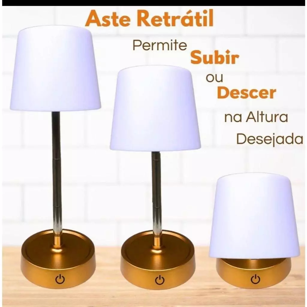 Abajur De Mesa Recarregável Retrátil Em Aço - Luminária Led USB Com Luz Branco Quente Ajustável Sem Fio Design Moderno