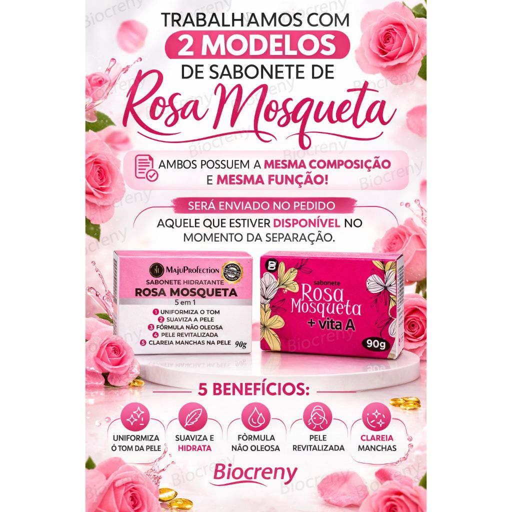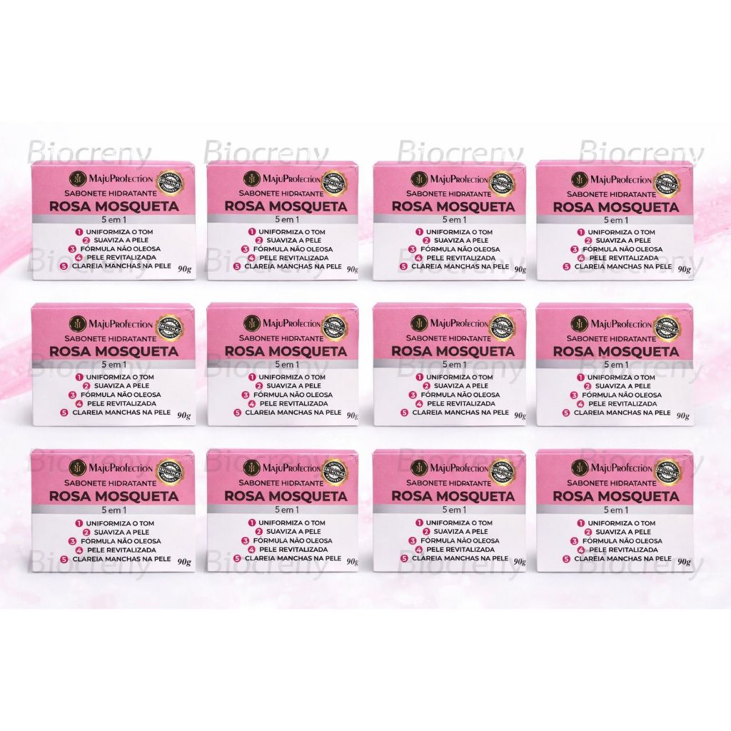 Kit 12 Sabonetes Rosa em Barra Tira Manchas Limpeza Profunda e Clareamento de Acne, Melasma e Pele