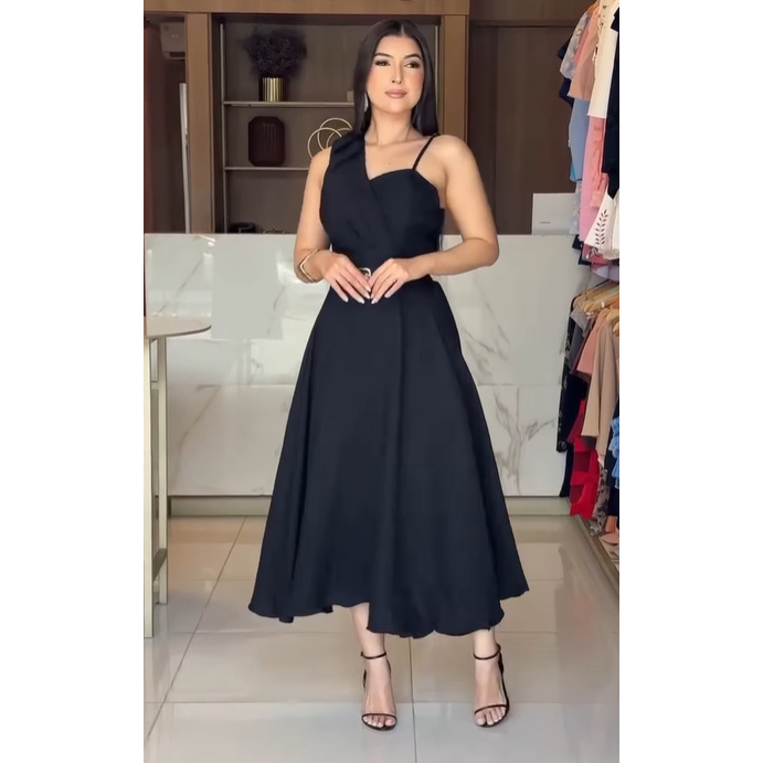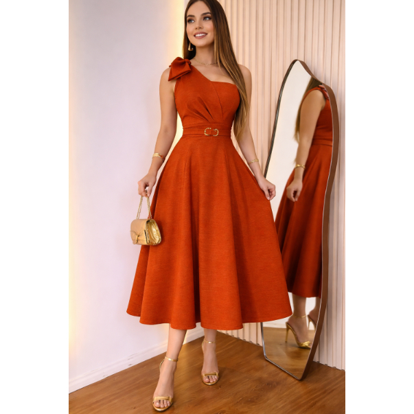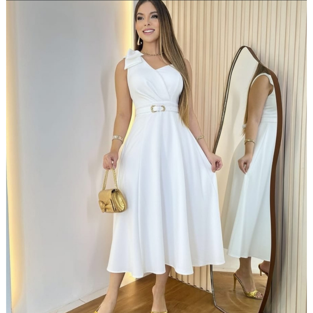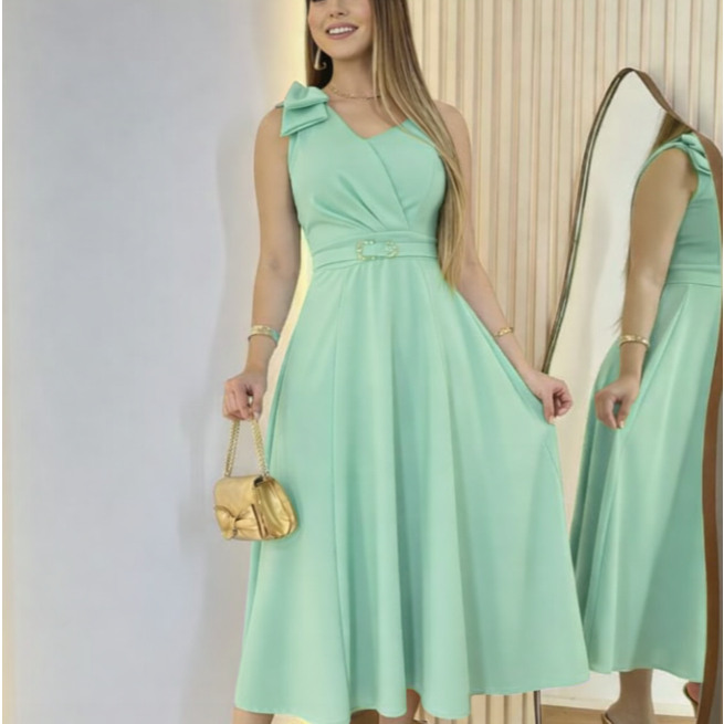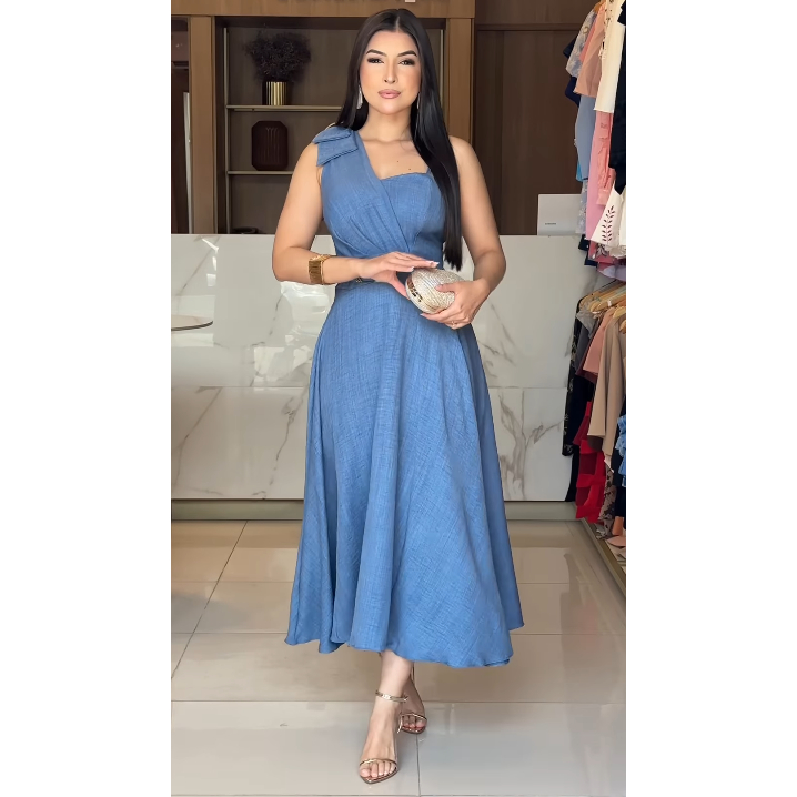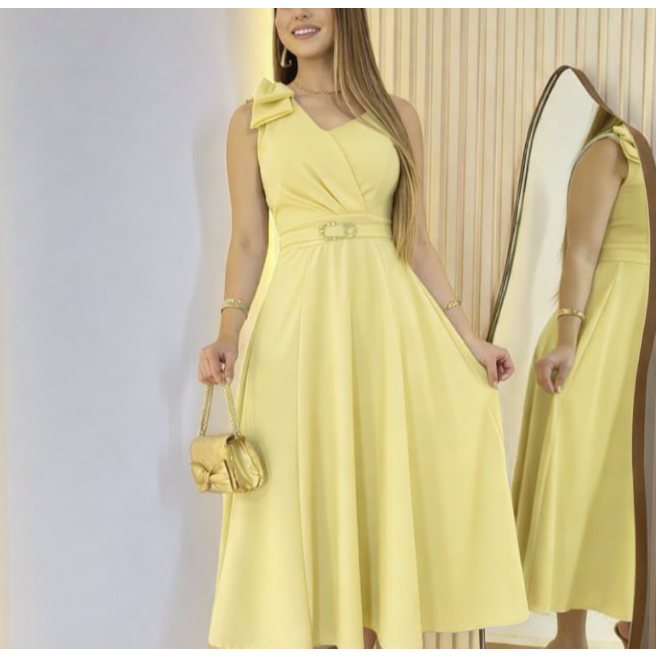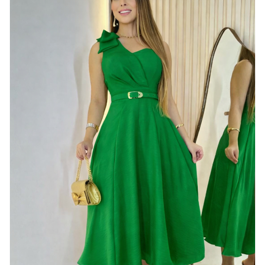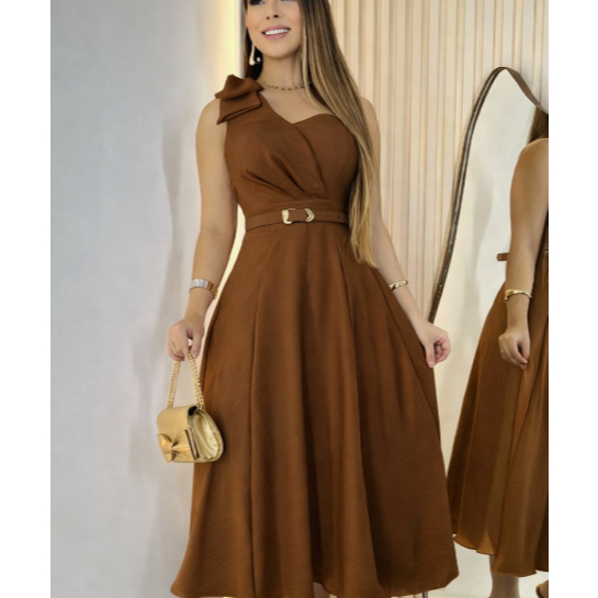 Vestido Midi com Cinto Aniversario Tecido Dunha Linho