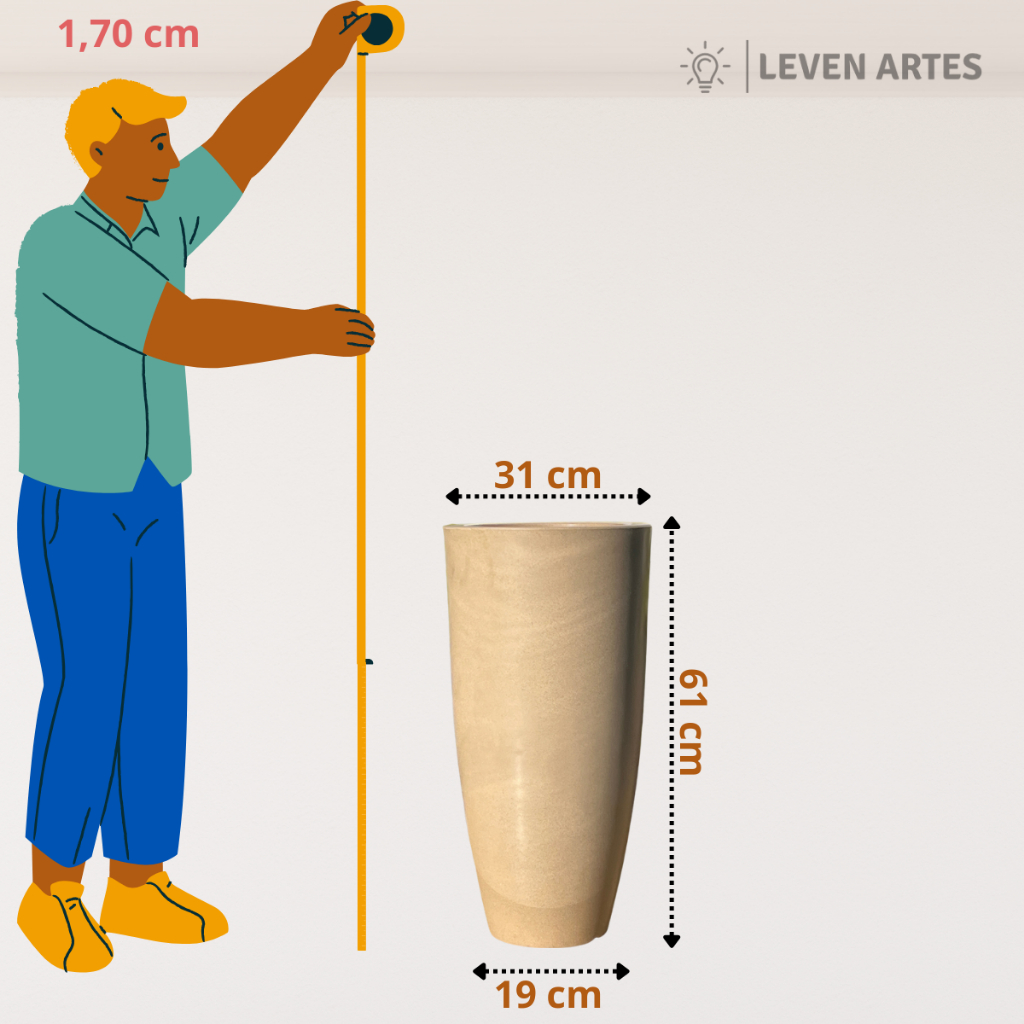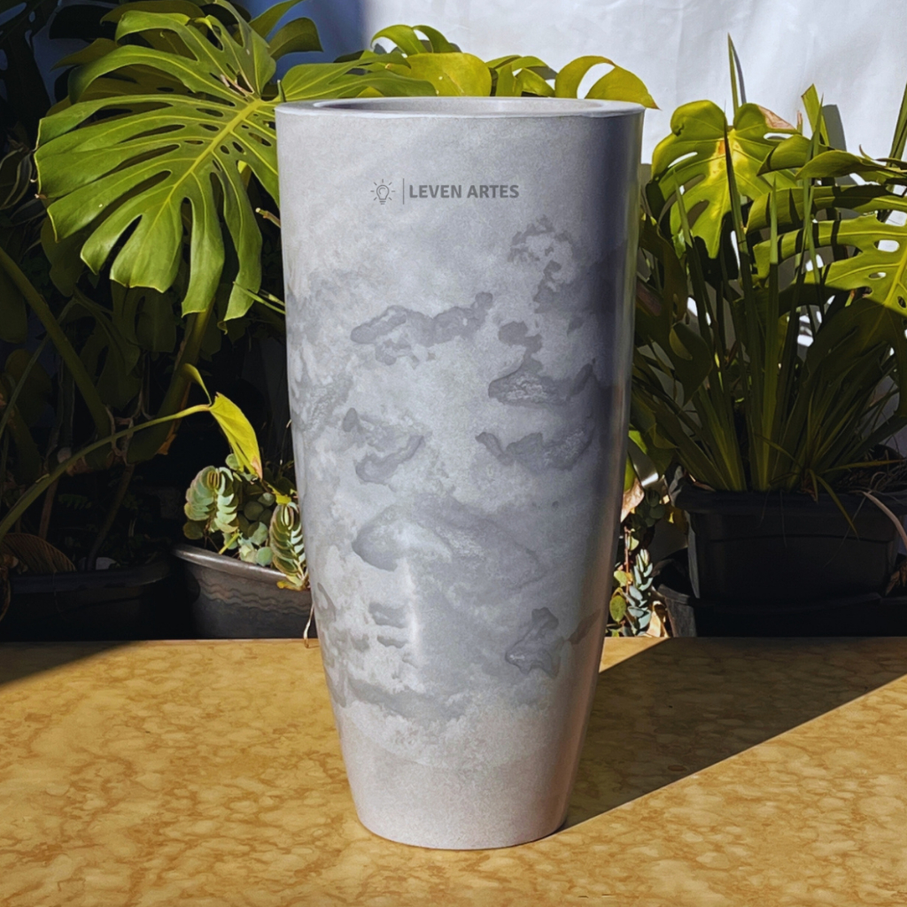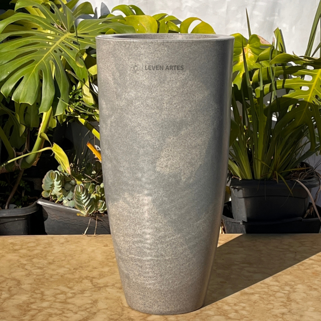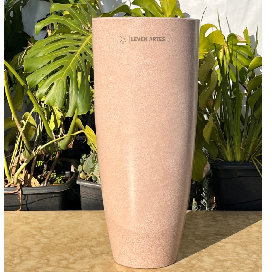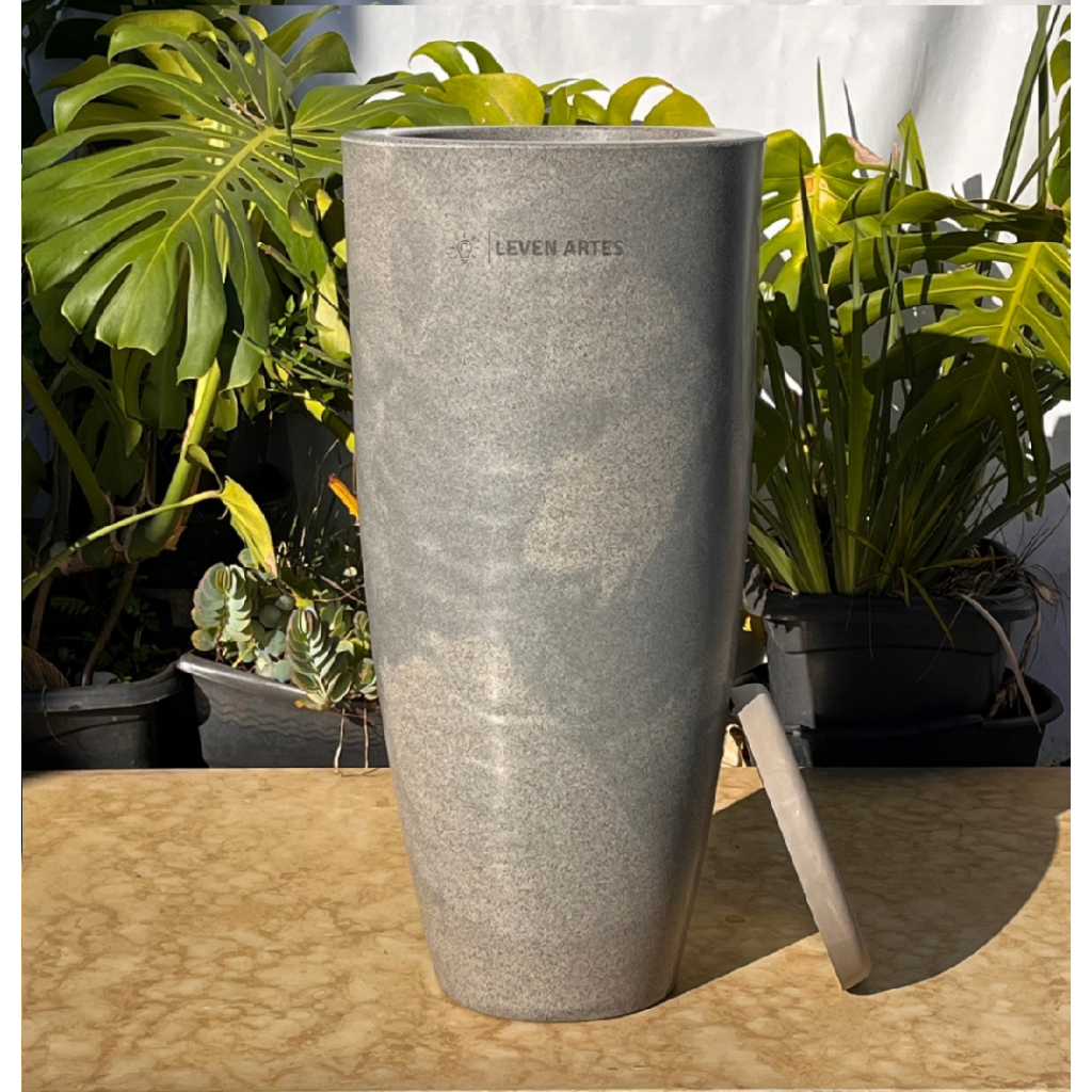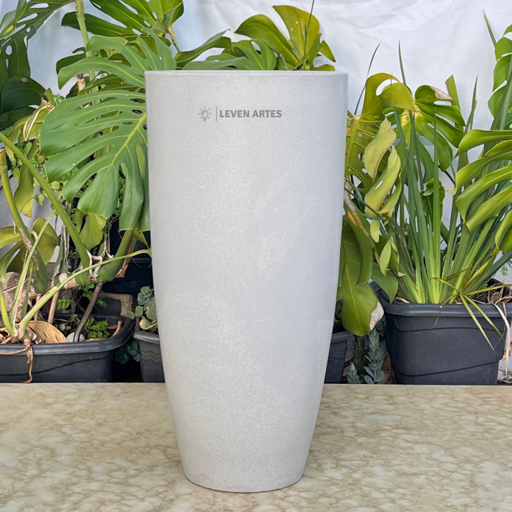 Vaso Planta Sala Coluna Ibiza Cone G Decorativo Liso Marmorizado Luxo 61x31 Resistente Leven Artes