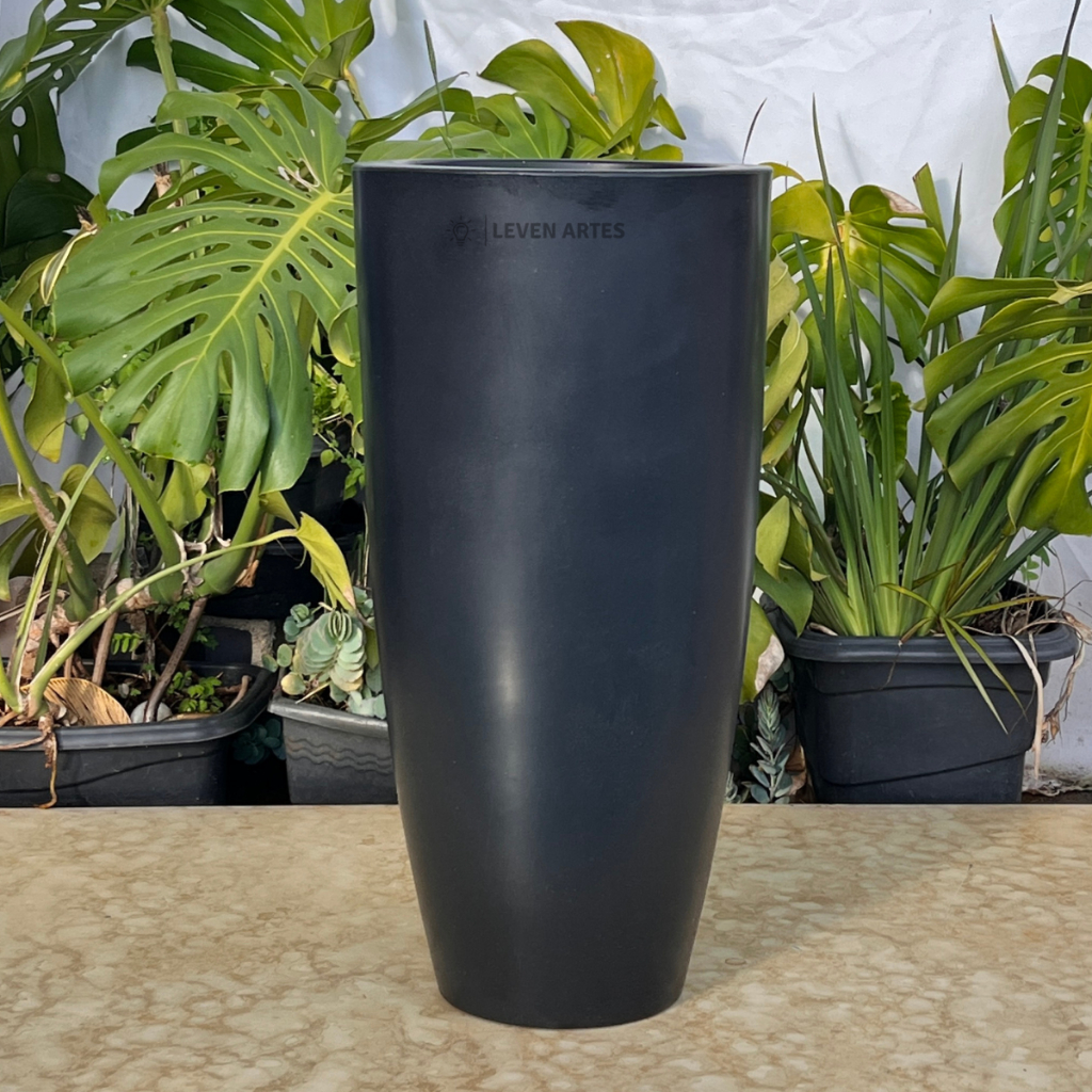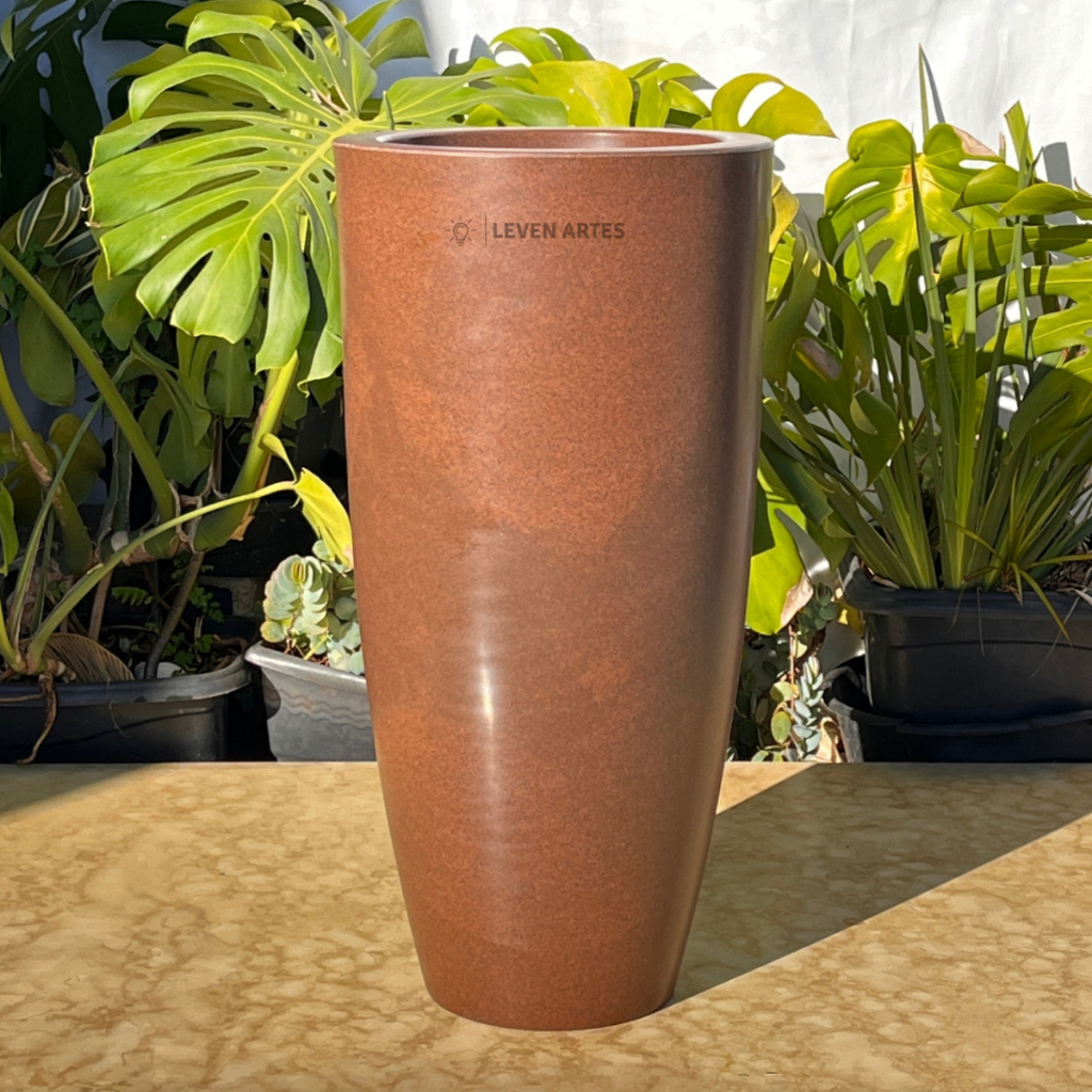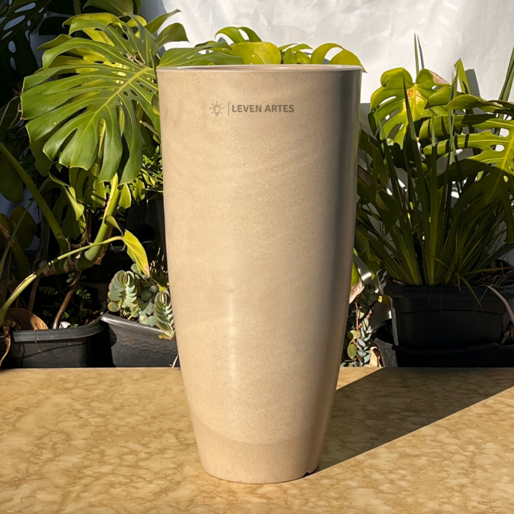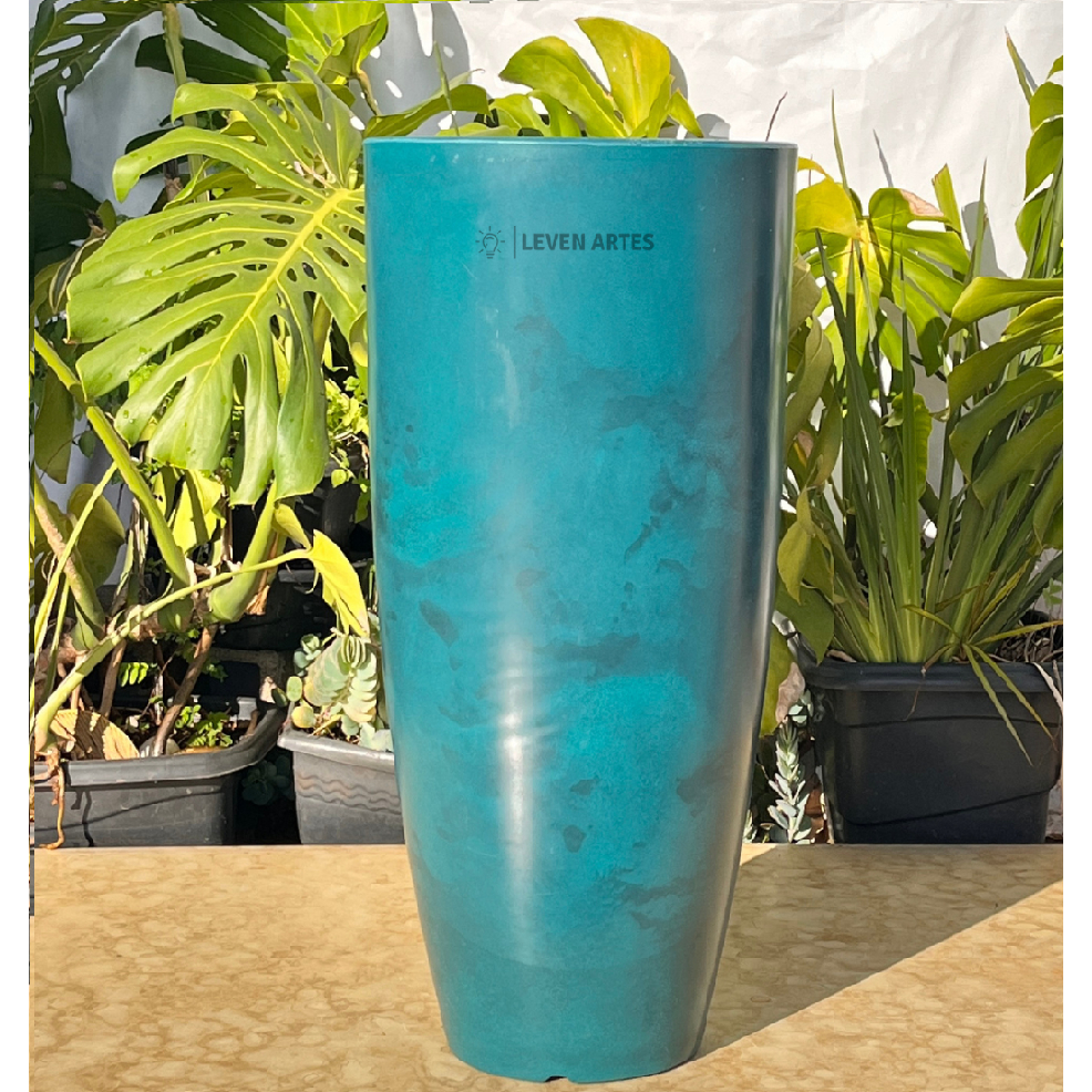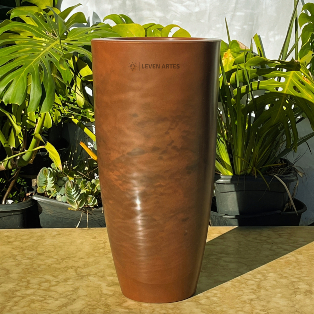 Vaso Planta Sala Coluna Ibiza Cone G Decorativo Liso Marmorizado Luxo 61x31 Resistente Leven Artes