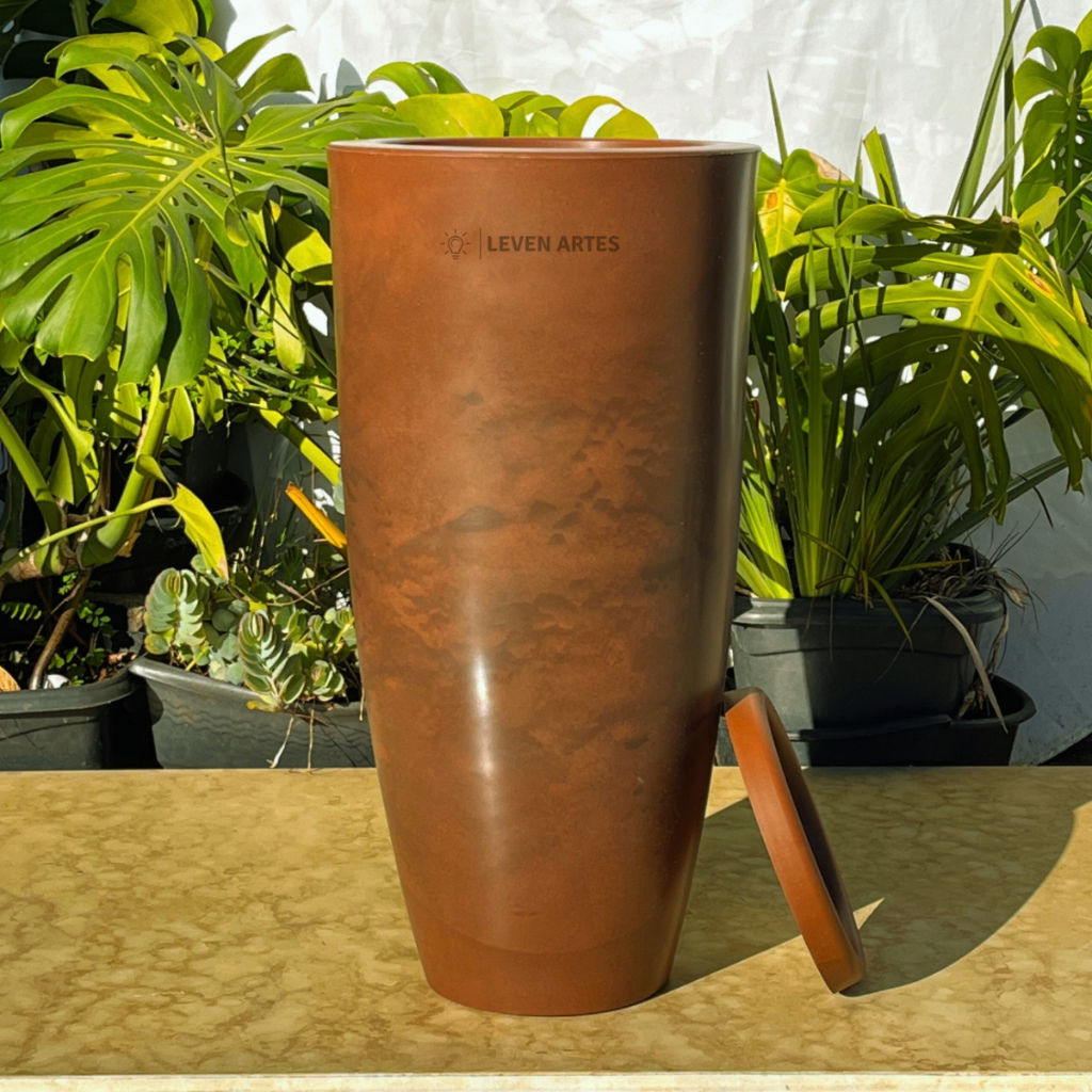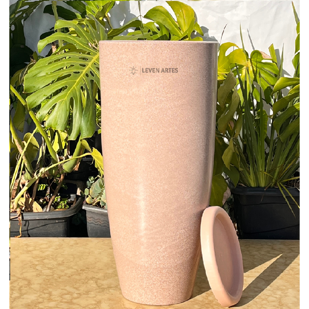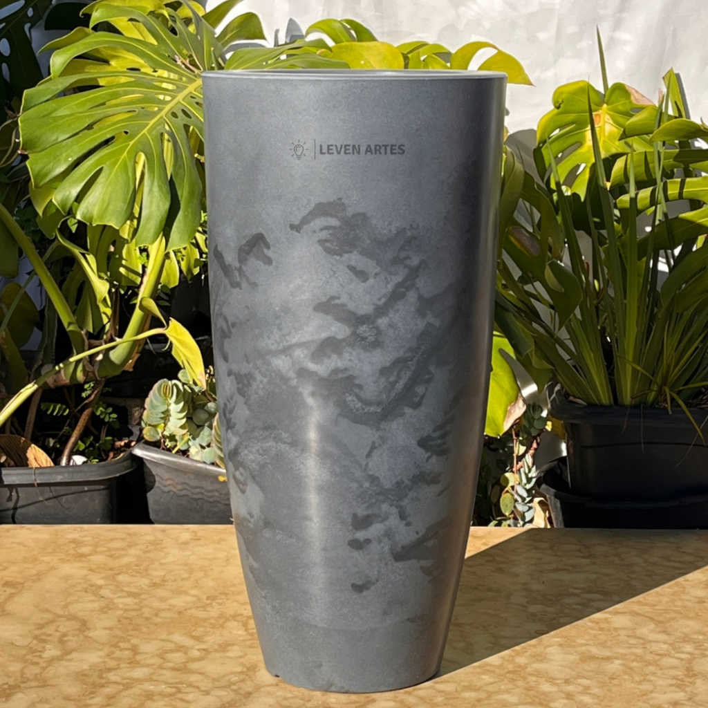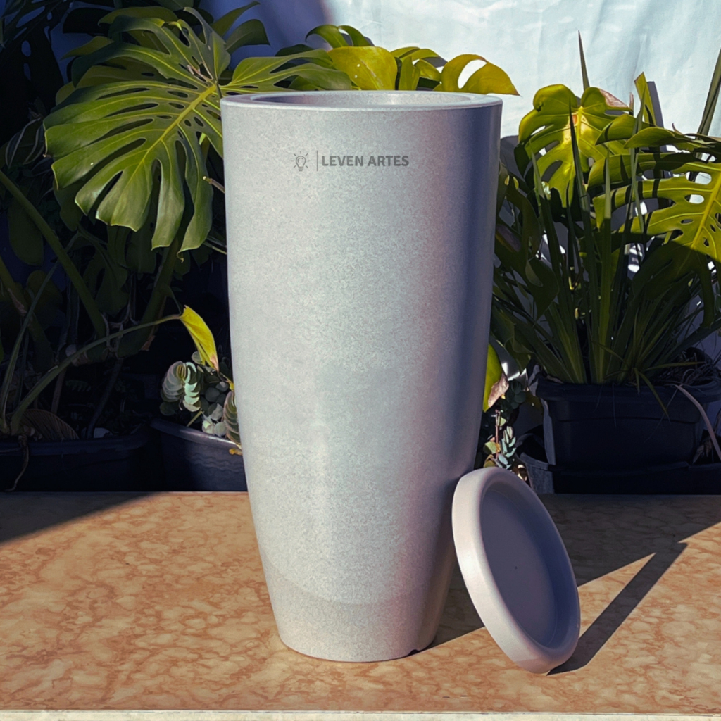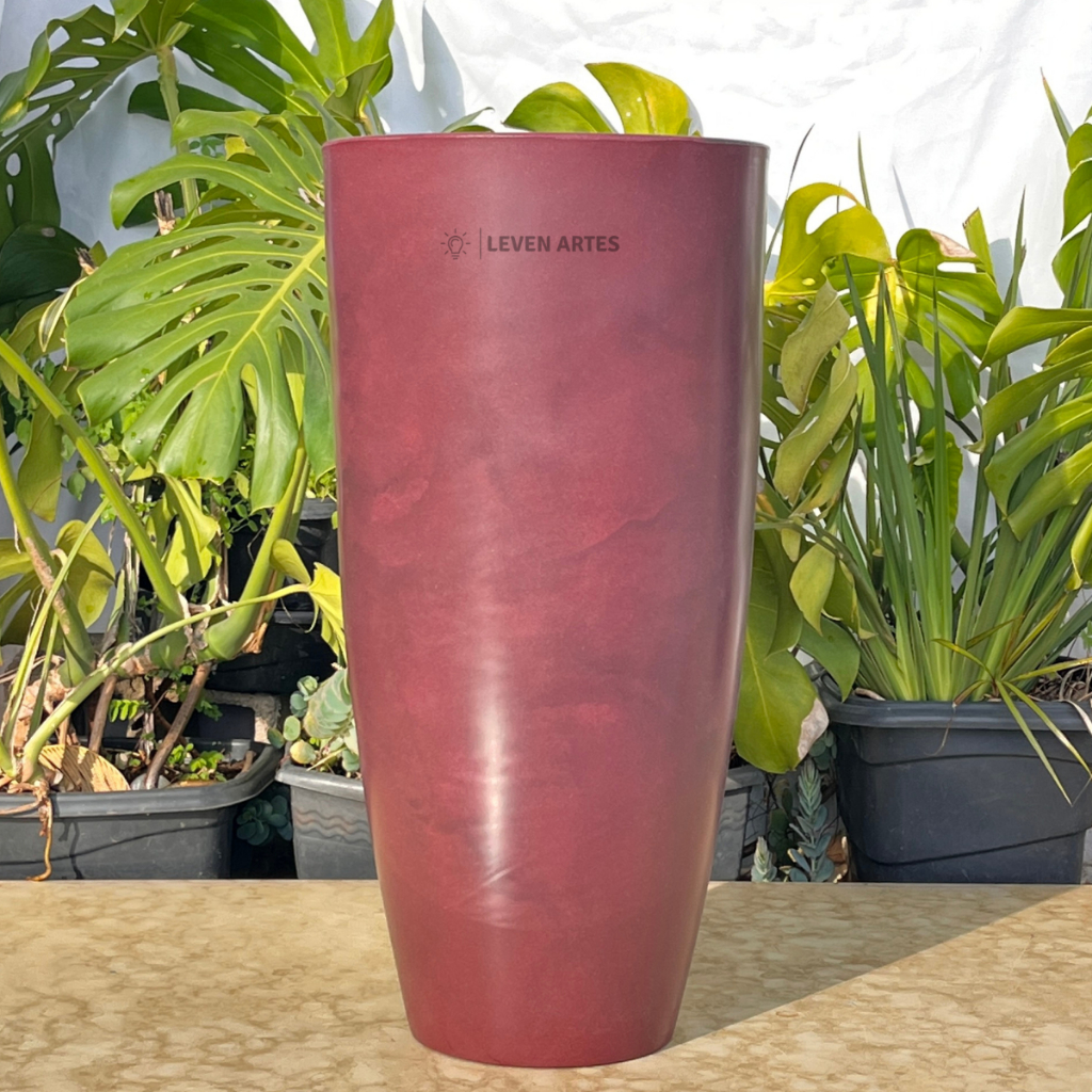 Vaso Planta Sala Coluna Ibiza Cone G Decorativo Liso Marmorizado Luxo 61x31 Resistente Leven Artes