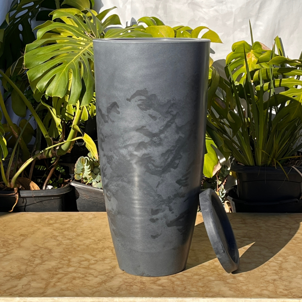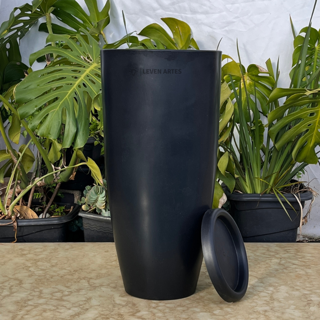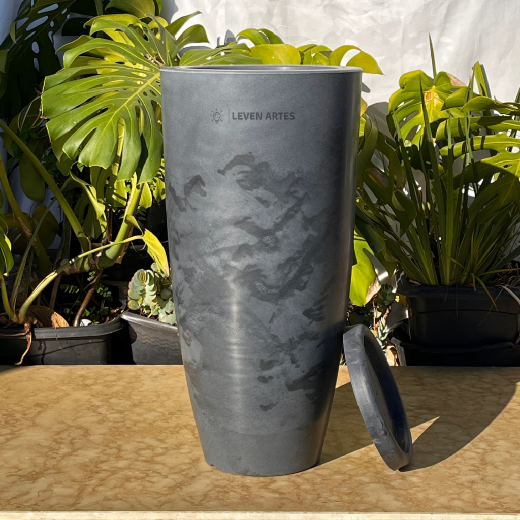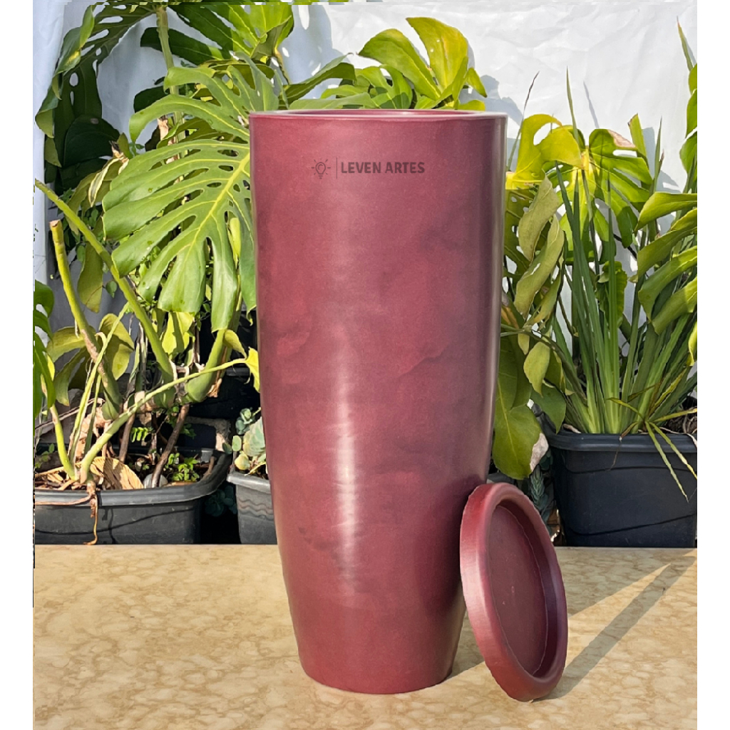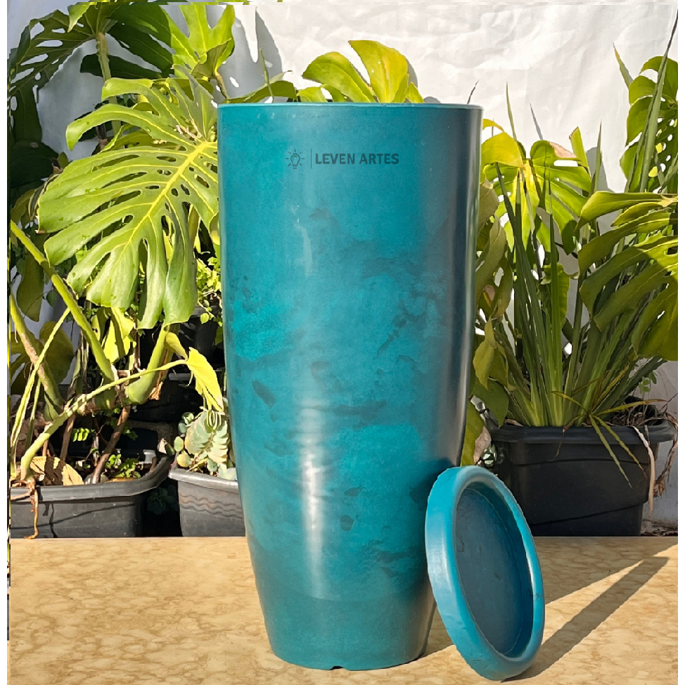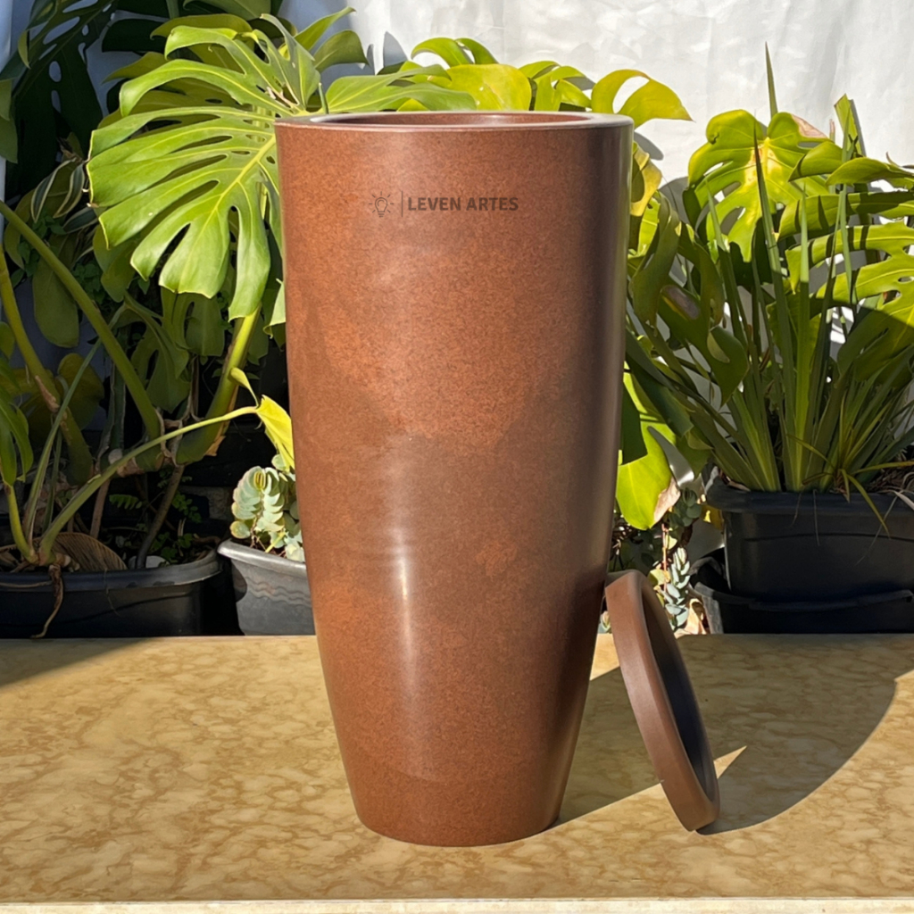 Vaso Planta Sala Coluna Ibiza Cone G Decorativo Liso Marmorizado Luxo 61x31 Resistente Leven Artes