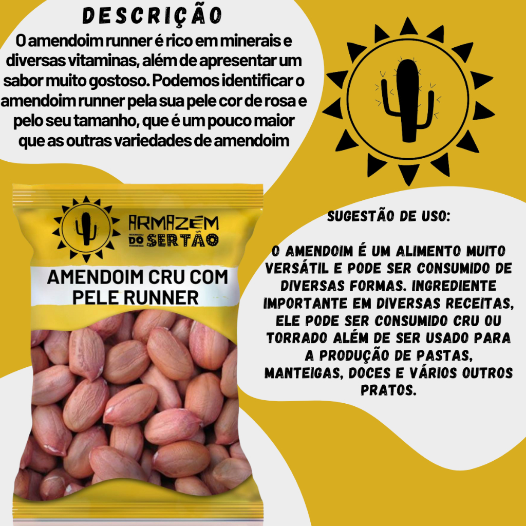Amendoim Cru Com Pele Runner 1 kg - 500GR