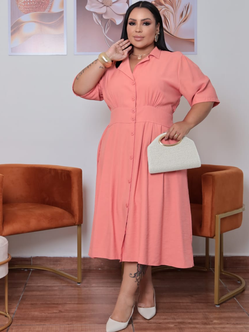 Vestido Chemise Plus Feminino Glamoroso Ideal Para Toda Mulher Tendência 2026