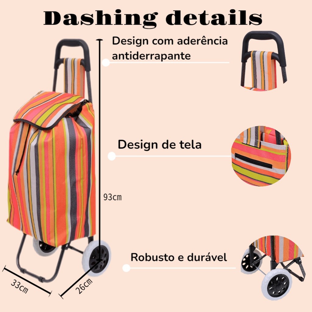 Carrinho de compras, carrinho de mercado, reforçado, dobrável, com rodas, capacidade de carga 30 kg.
