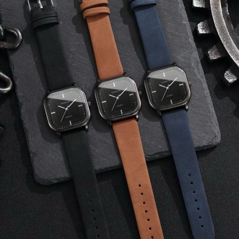 Relógio Masculino de luxo elegante Couro sintético marca geneva original