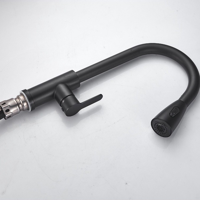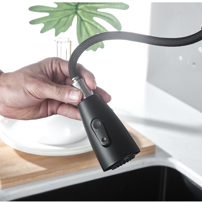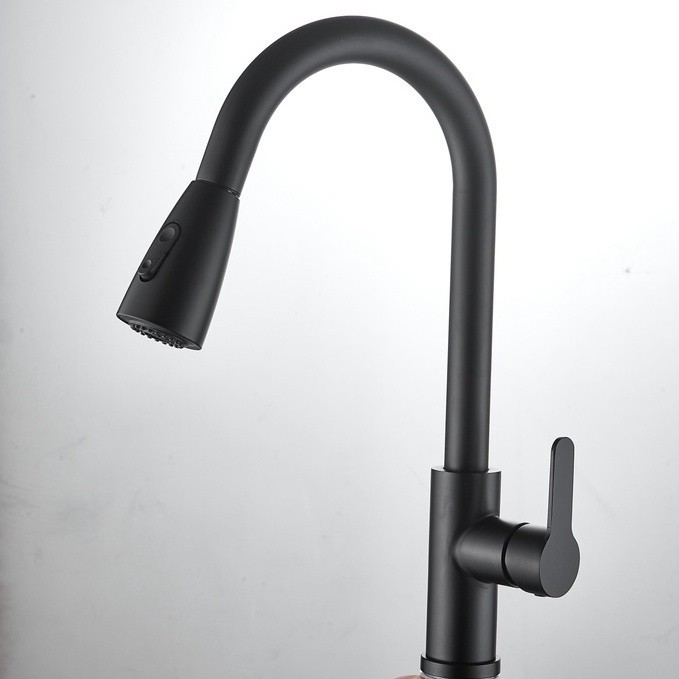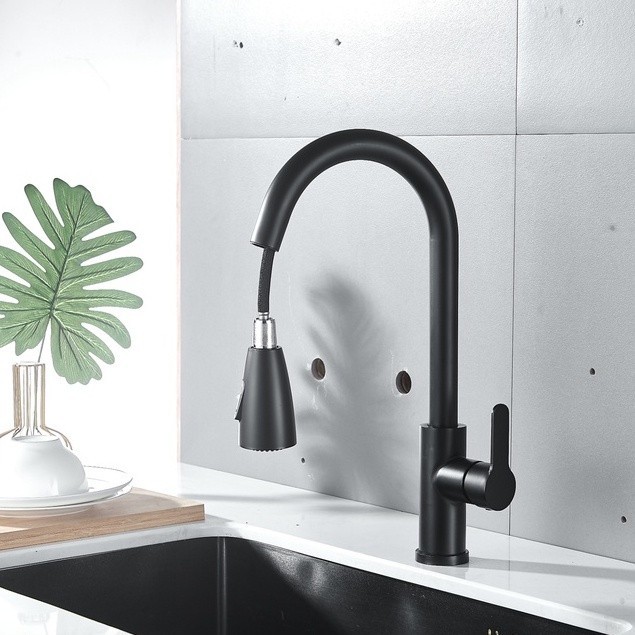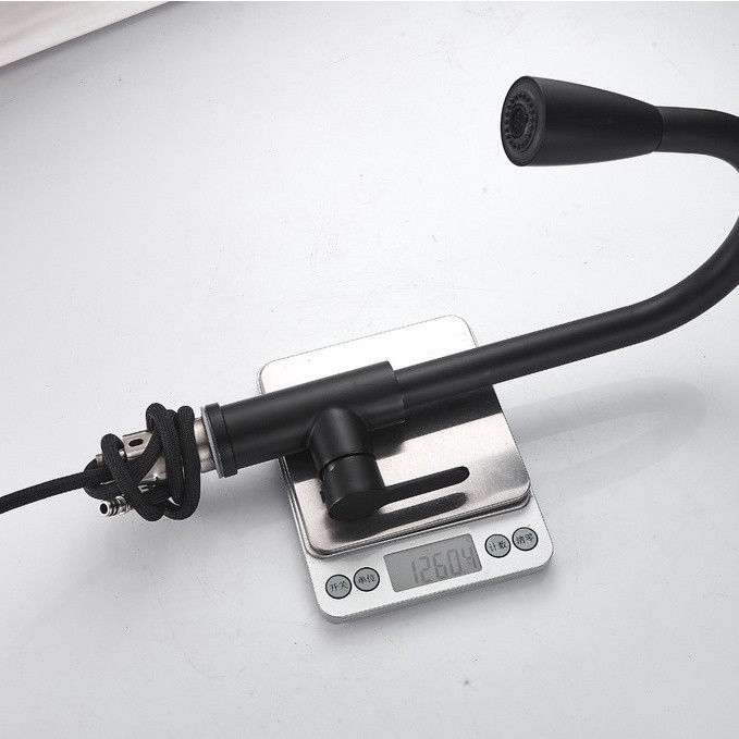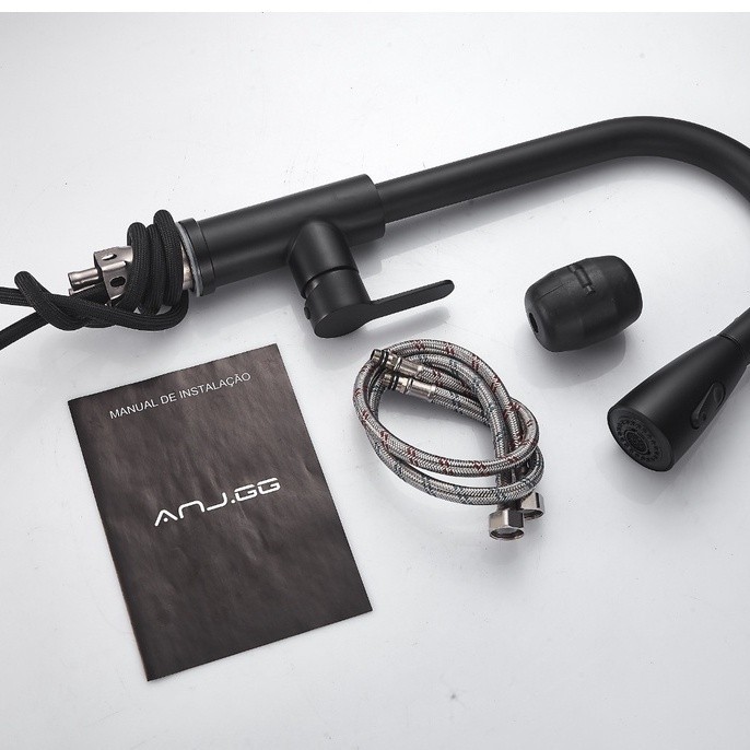 Torneira cozinha monocomando pull down com extensor arejador preta ou aço escovado