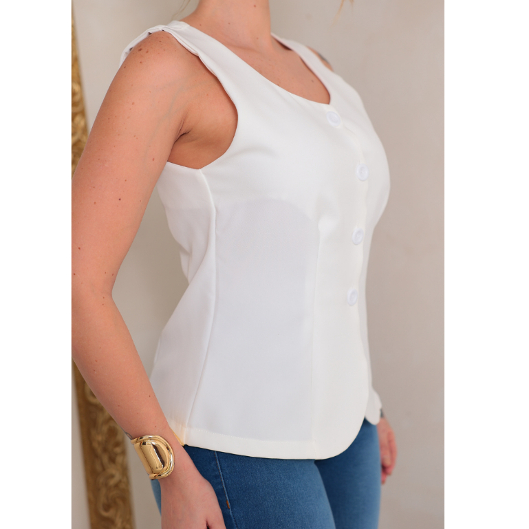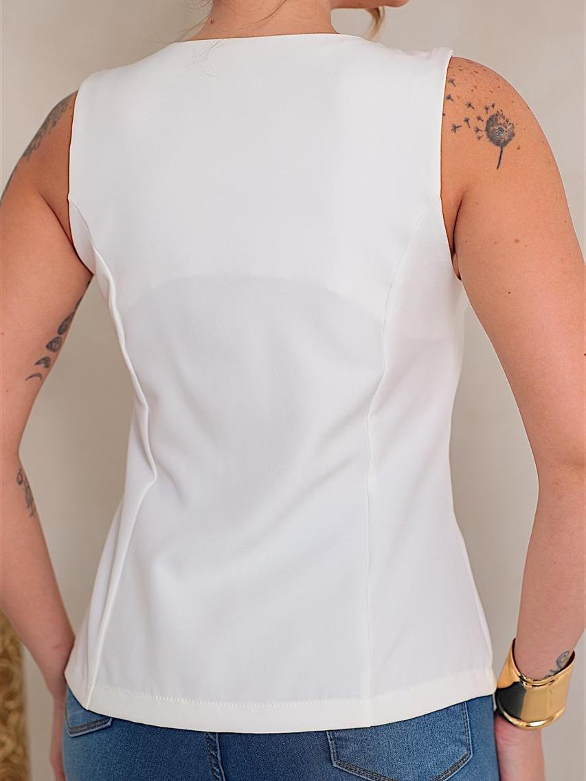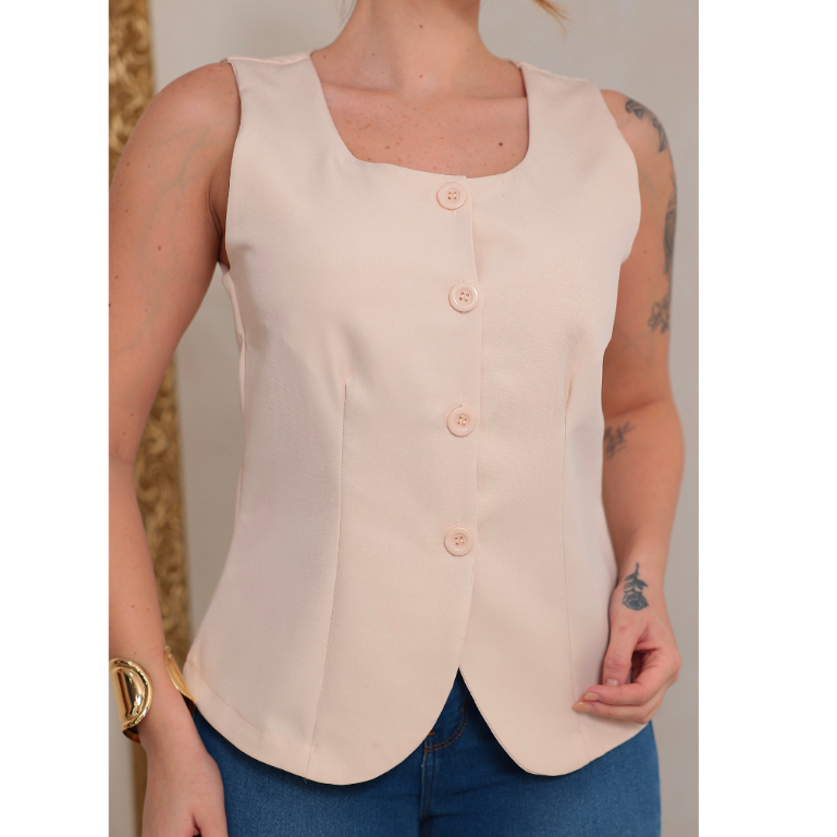 Colete Feminino Decote Quadrado com Botões na Vista Tecido Alfaiataria Premium