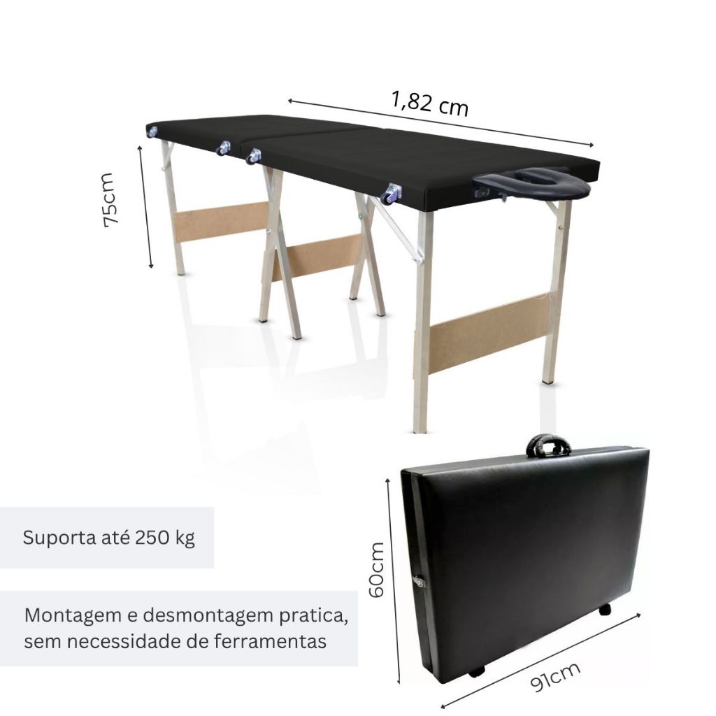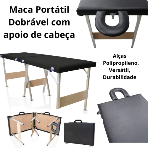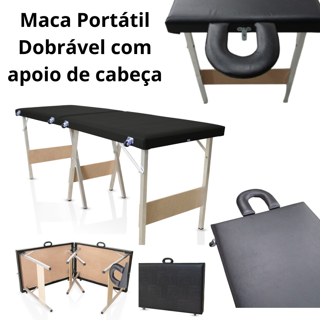 Maca dobrável portátil PRETA BRANCA ROSABB PINK LILAS com APOIO de Cabeça Estética/Massagem/Cílios/Tatuagem- 240kg