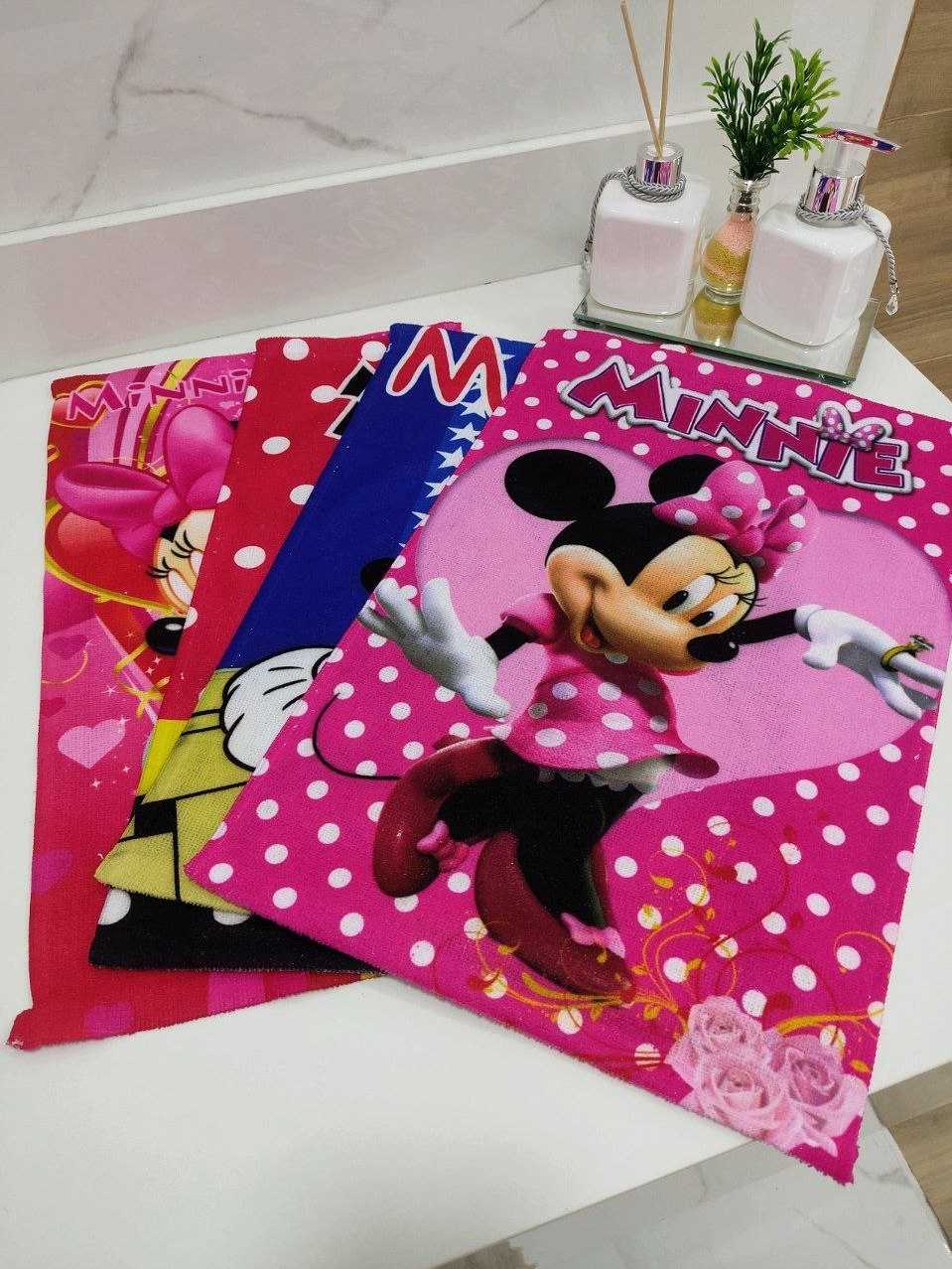 20 Toalhas de Rosto e Mão Personalizada Mickey Mouse Minnie Mouse Surtidas Infantil Menino Menina